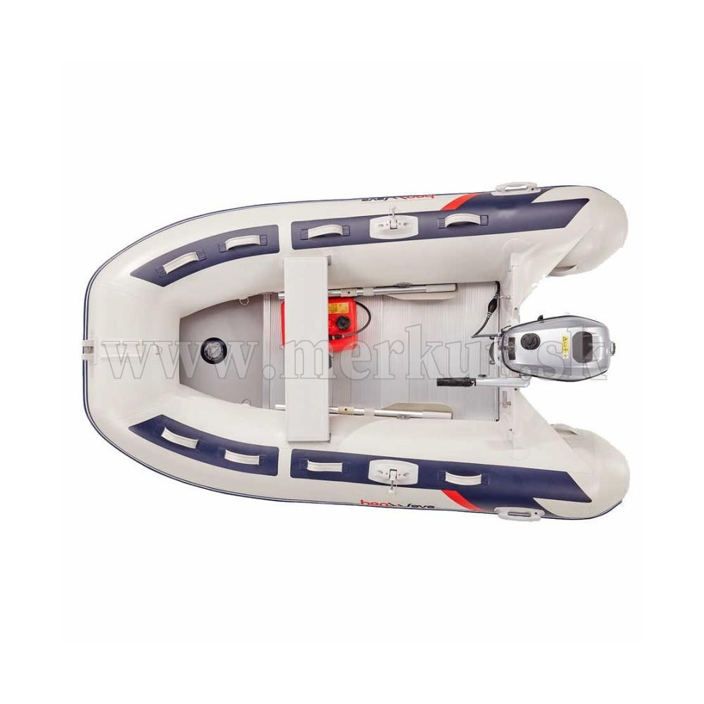 HONWAVE T25-AE je špičkovo prepracovaný nafukovací čln s hliníkovou skladacou podlahou, dlhý 2,5 m, ktorý hravo zvládne takmer každú námornú aktivitu.