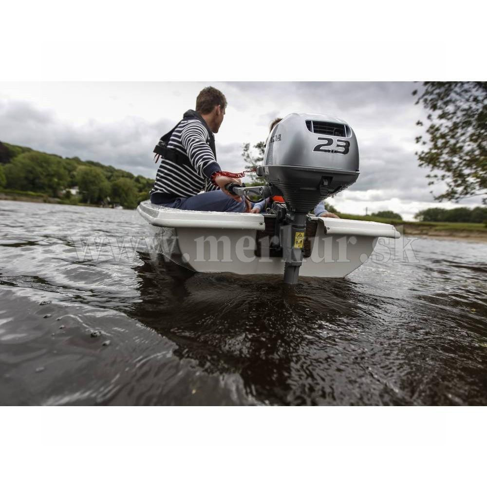 Ľahko prenosný lodný motor, ideálny pre pohon malých lodičiek, člnov či kanoií ktoré zvládne ovládať aj dieťa.