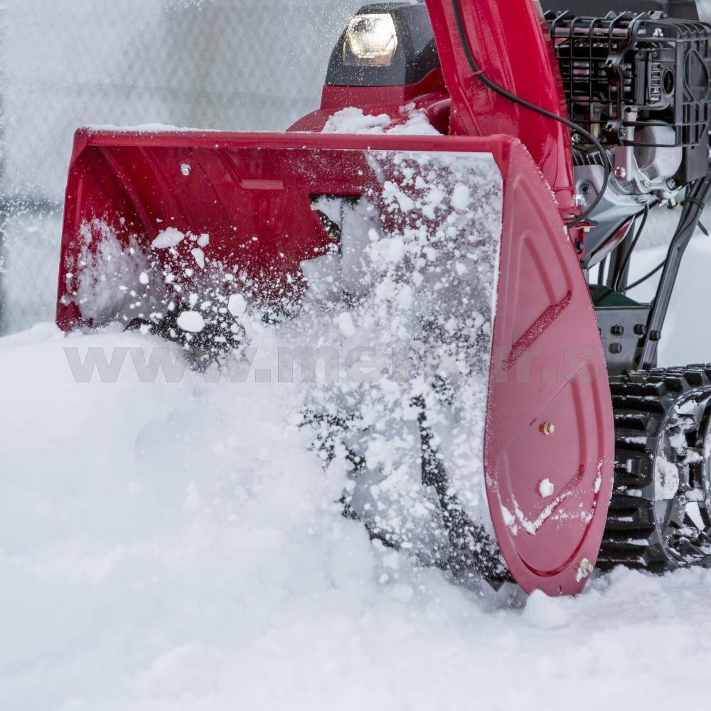Výkonom až 42 ton snehu za hodinu táto pásová snežná fréza uspokojí aj veľmi náročného užívateľa a majiteľa domu v oblastiach, kde v zime napadne veľká vrstva snehu alebo kde sa tvoria pravidelne záveje a snehové jazyky, ktoré treba pravidelne odpratávať.