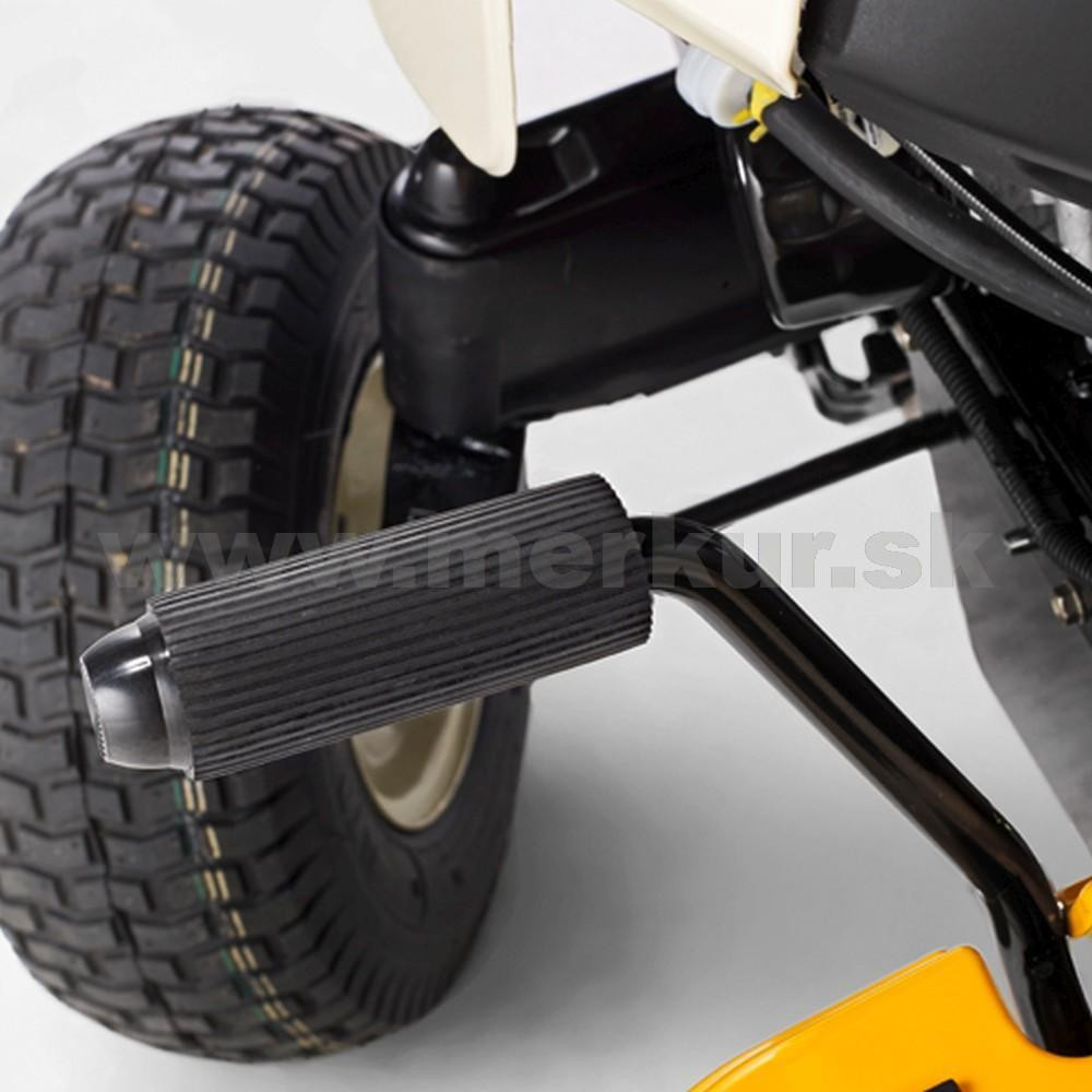 Kosačka je vybavená hydrostatickou prevodovkou, ktorá umožňuje plynulé nastavenie rýchlosti jazdy stlačením nožnej páky.