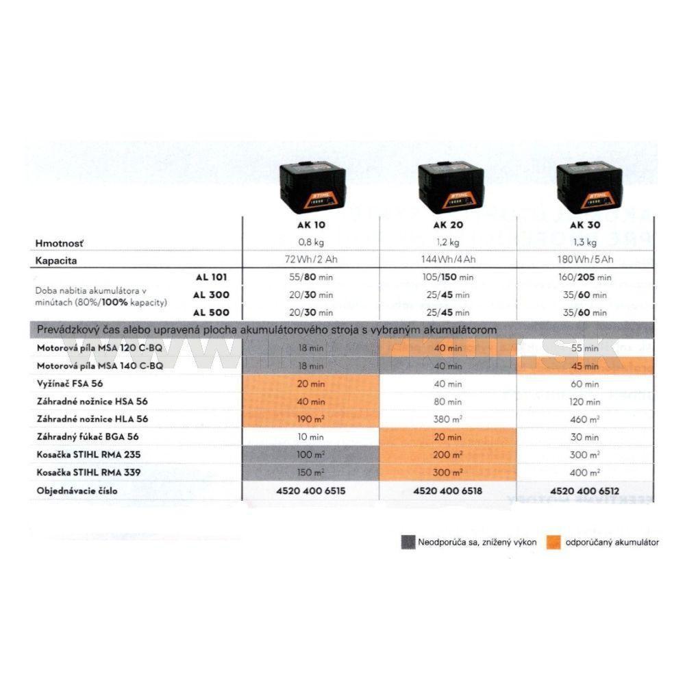| Orientačné časy nabíjania podľa typu aku a nabíjačky: | údaje nájdete v popise alebo prilohách k produktu |