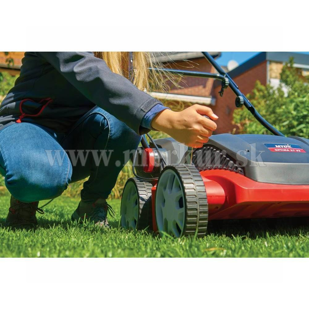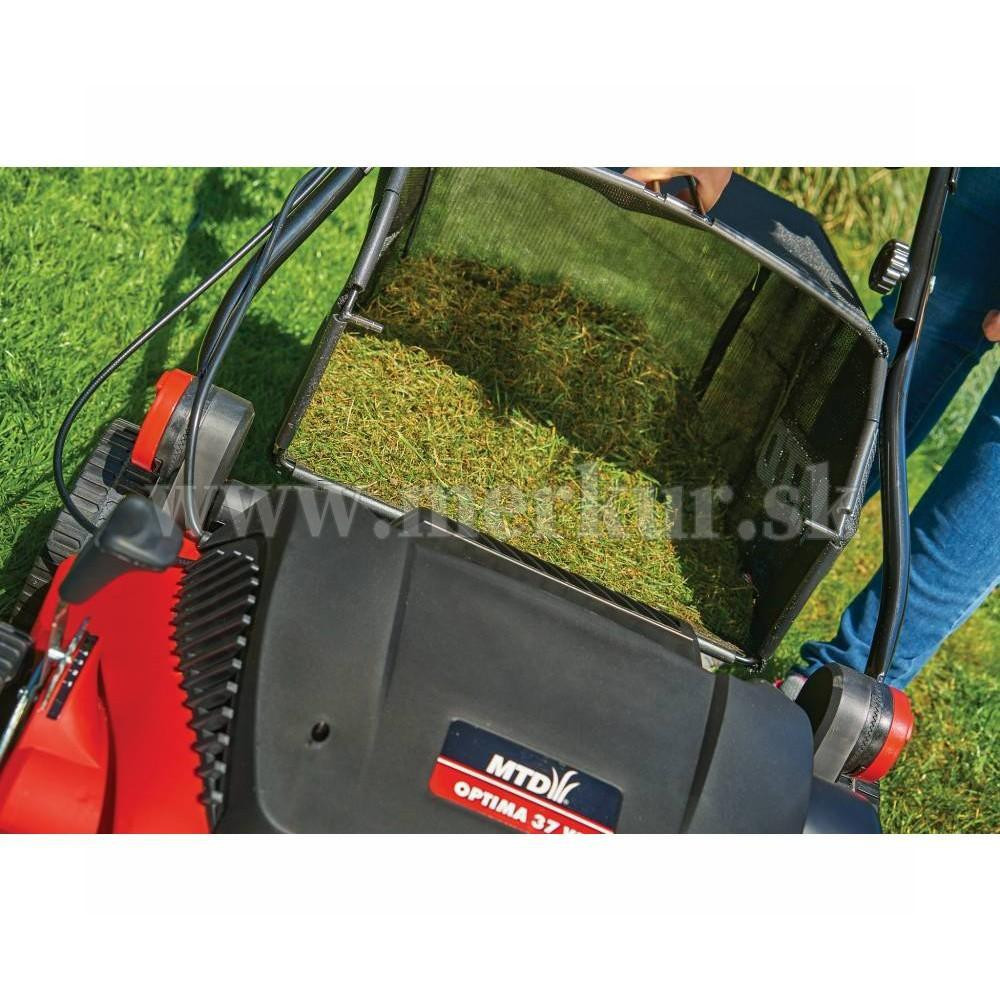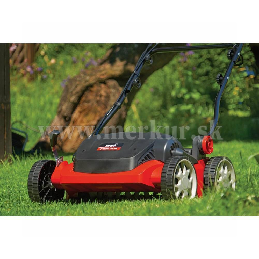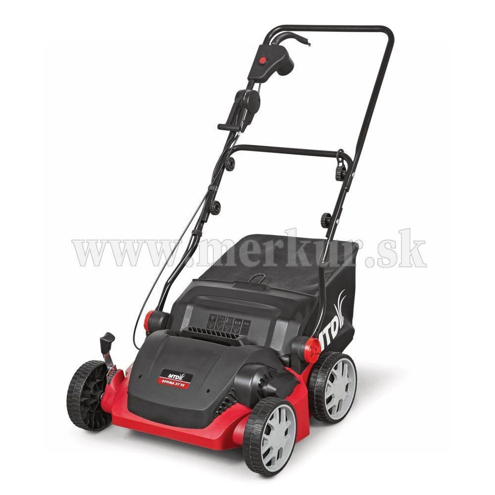 Elektrický vertikutátor OPTIMA 37 VE má výkon 1 600 W, záber vertikutačného a pružinového valca 37 cm a veľký 45 l textilný kôš.