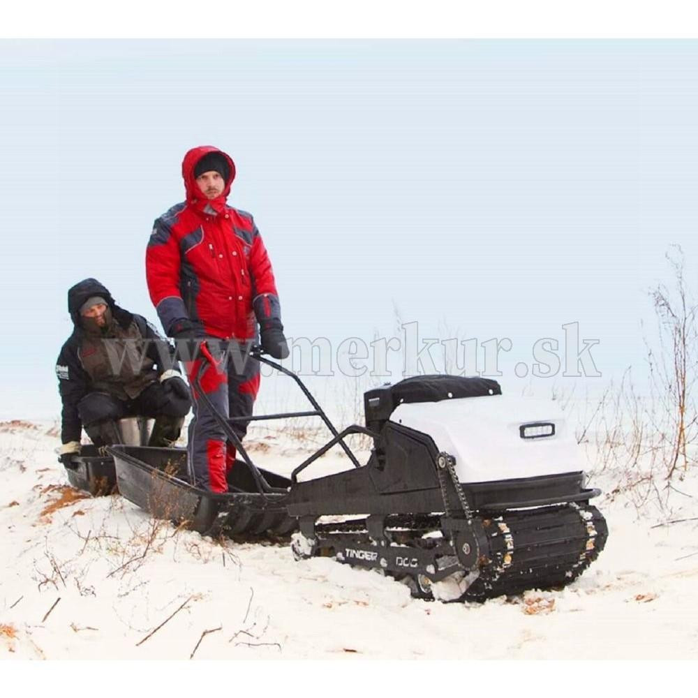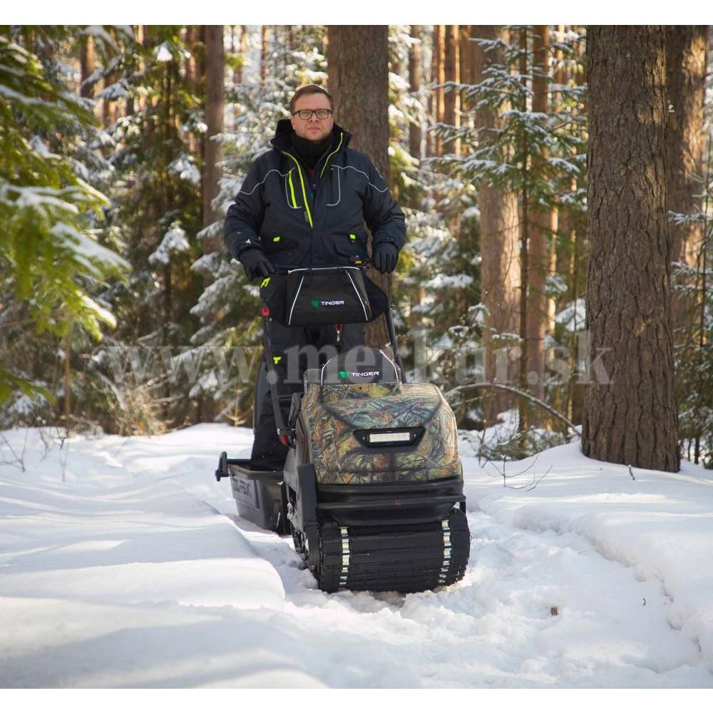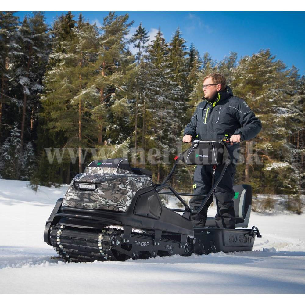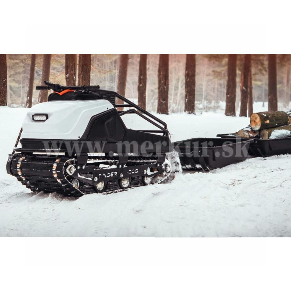 TINGER DOG PRO s motorom 13.5 hp Briggs&Stratton a CVT prevodovkou môže ťahať sane až s hmotnosťou 200 kg na suchom povrchu (na snehu a ľade až 500 kg), hravo zdolá lesné cesty aj zasnežené krajiny.