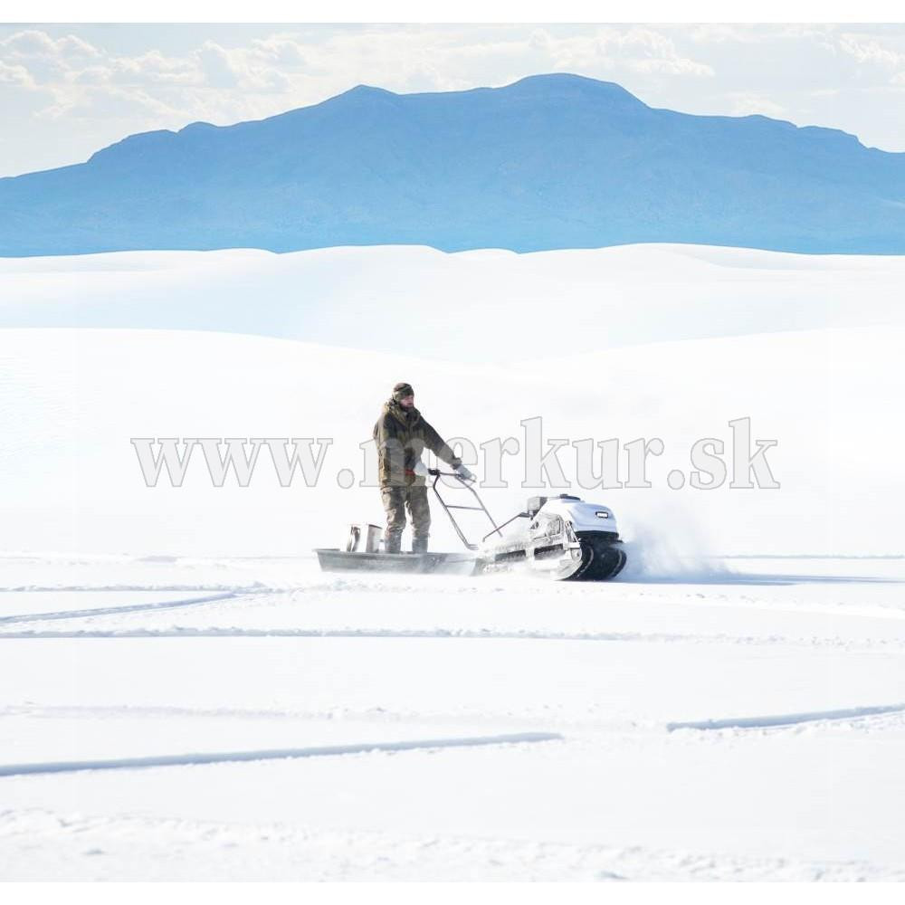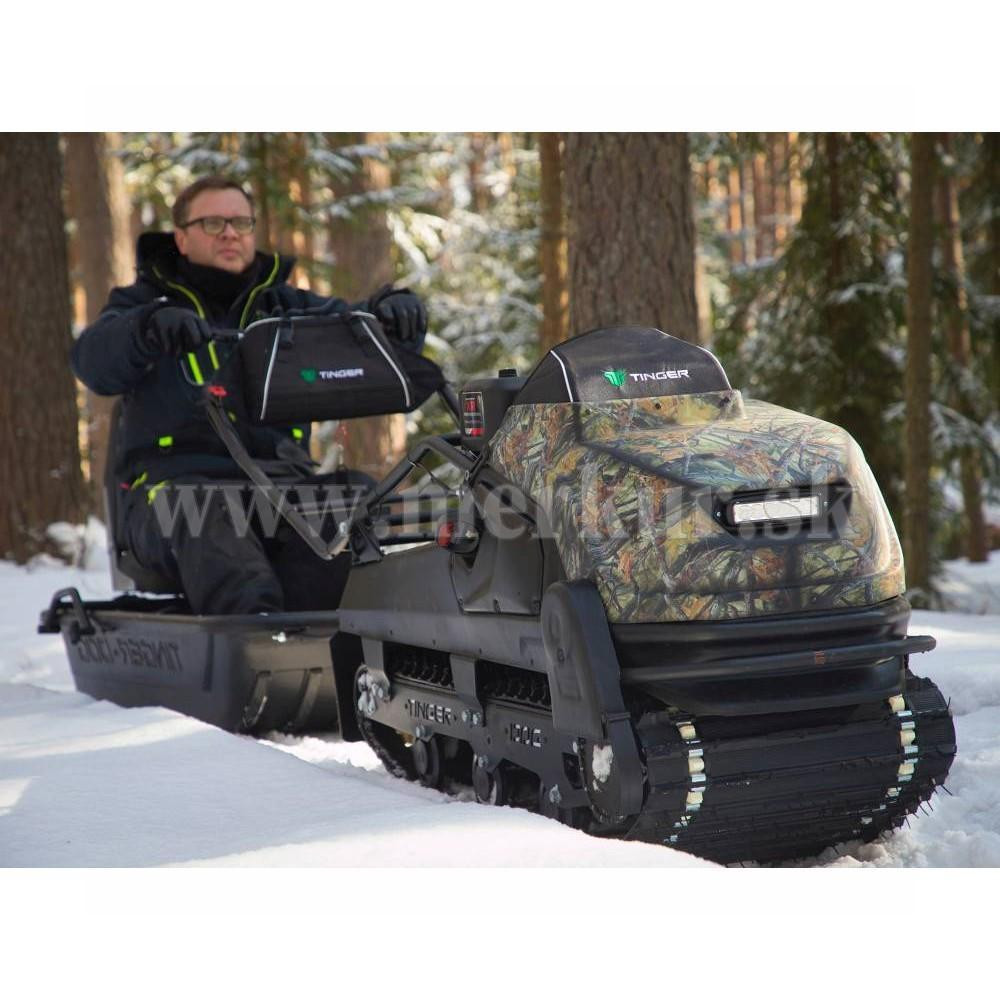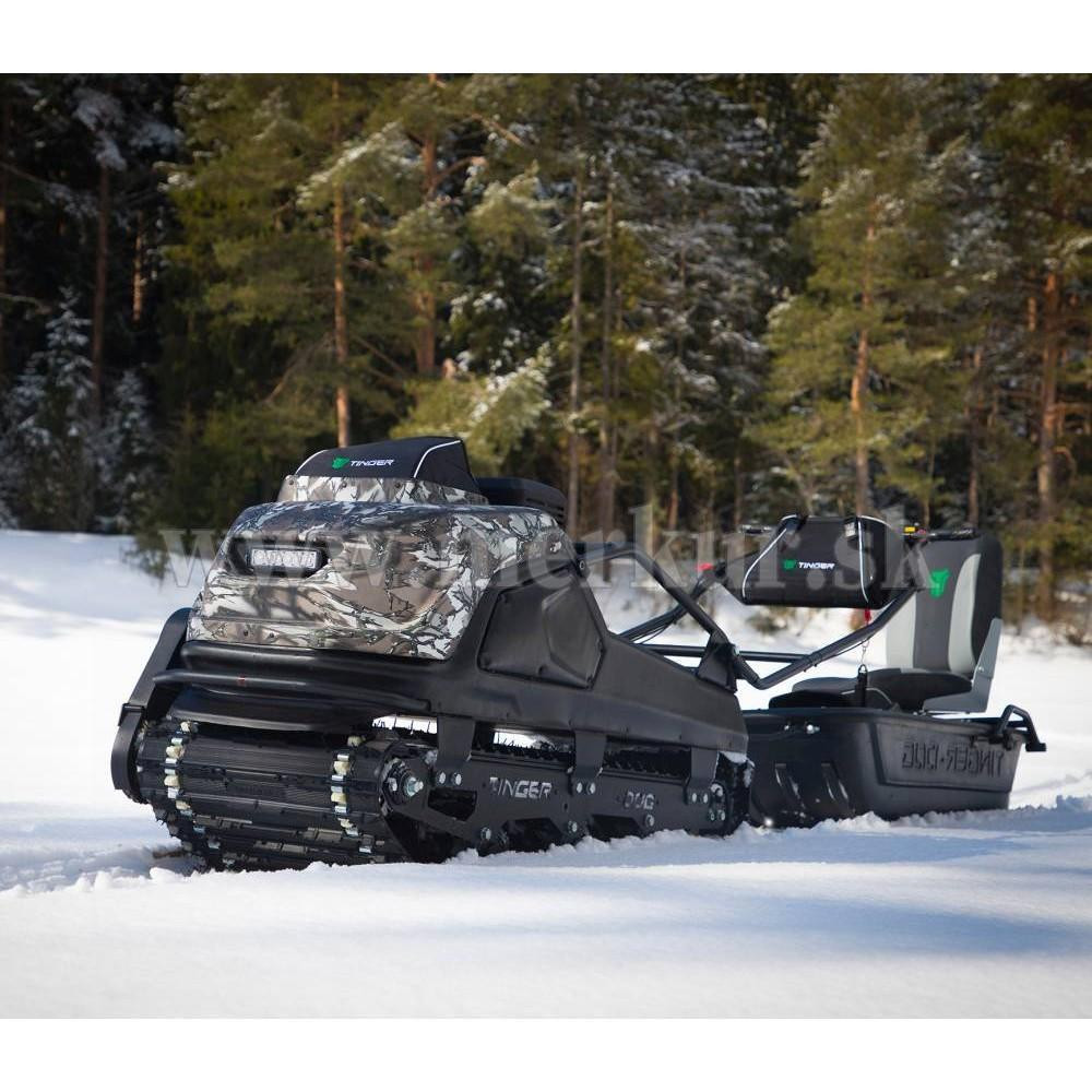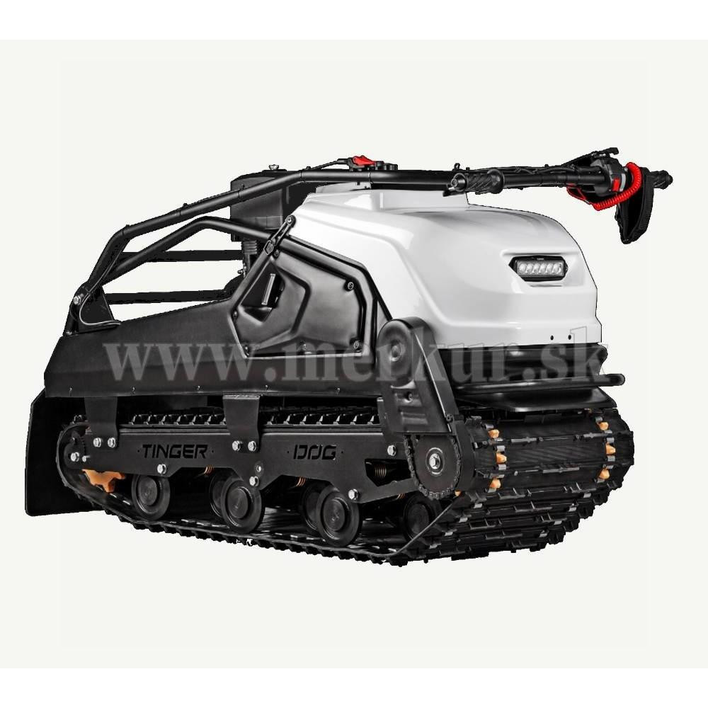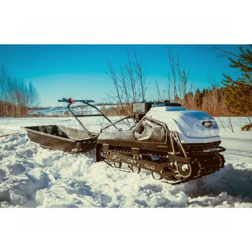 TINGER DOG PRO s motorom 13.5 hp Briggs&Stratton a CVT prevodovkou môže ťahať sane až s hmotnosťou 200 kg na suchom povrchu (na snehu a ľade až 500 kg), hravo zdolá lesné cesty aj zasnežené krajiny.