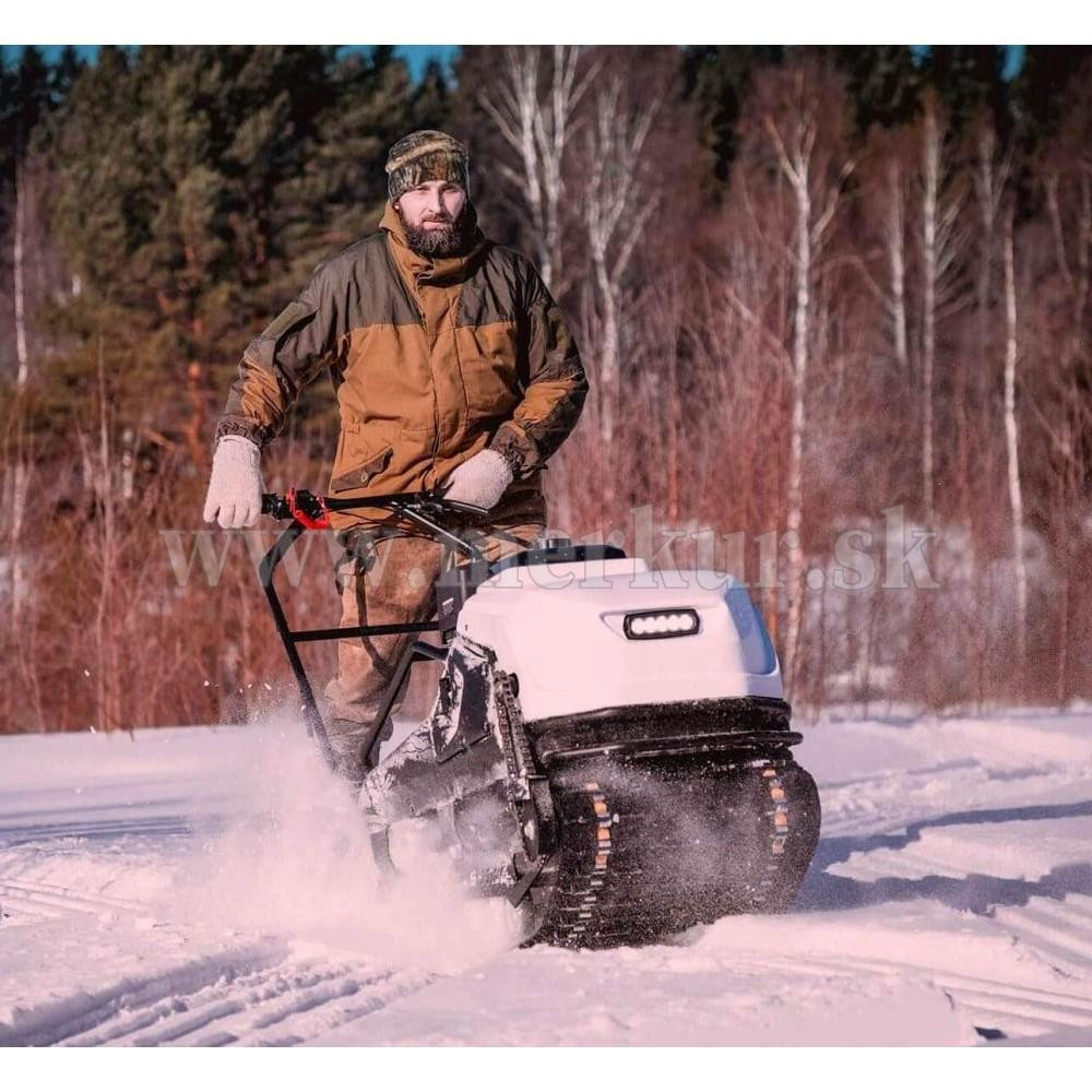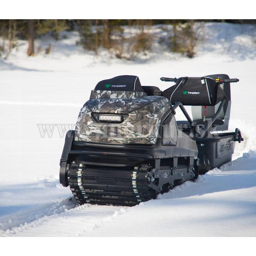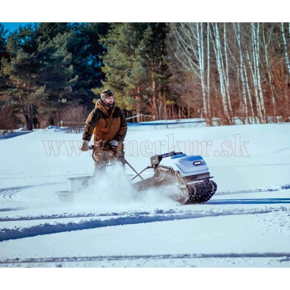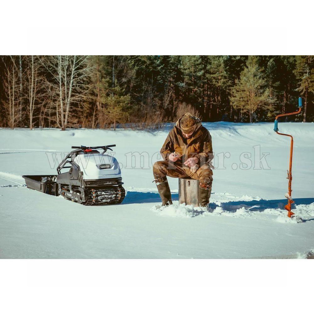 TINGER DOG PRO s motorom 13.5 hp Briggs&Stratton a CVT prevodovkou môže ťahať sane až s hmotnosťou 200 kg na suchom povrchu (na snehu a ľade až 500 kg), hravo zdolá lesné cesty aj zasnežené krajiny.