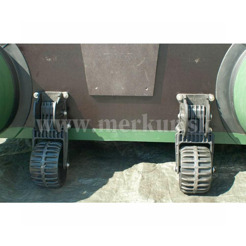 Kolieska sa montujú na zadné čelo (zrkadlo) člna a pri plavbe je možné ich vyklopiť do vertikálnej polohy.