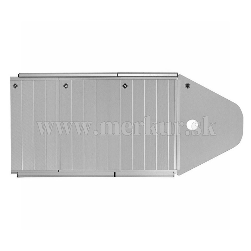 Vystužená podlaha hliník je žložená z dielov, ktoré sa spájajú hliníkovými profilmi. Jednotlivé diely podlahy sú vyrobené z hiníka, ktorý má protišmykovú úpravu. Špic podlahy (číslo dielu 1) je aj pri hliníkovom prevedení vyrobený z vodeodolnej preglejky. Pre vybratie podlahy z člna je nutné podlahu rozobrať na jednotlivé diely, ktoré je následne možné zabaliť do tašky v ktorej sa podlaha k člnu dodáva.