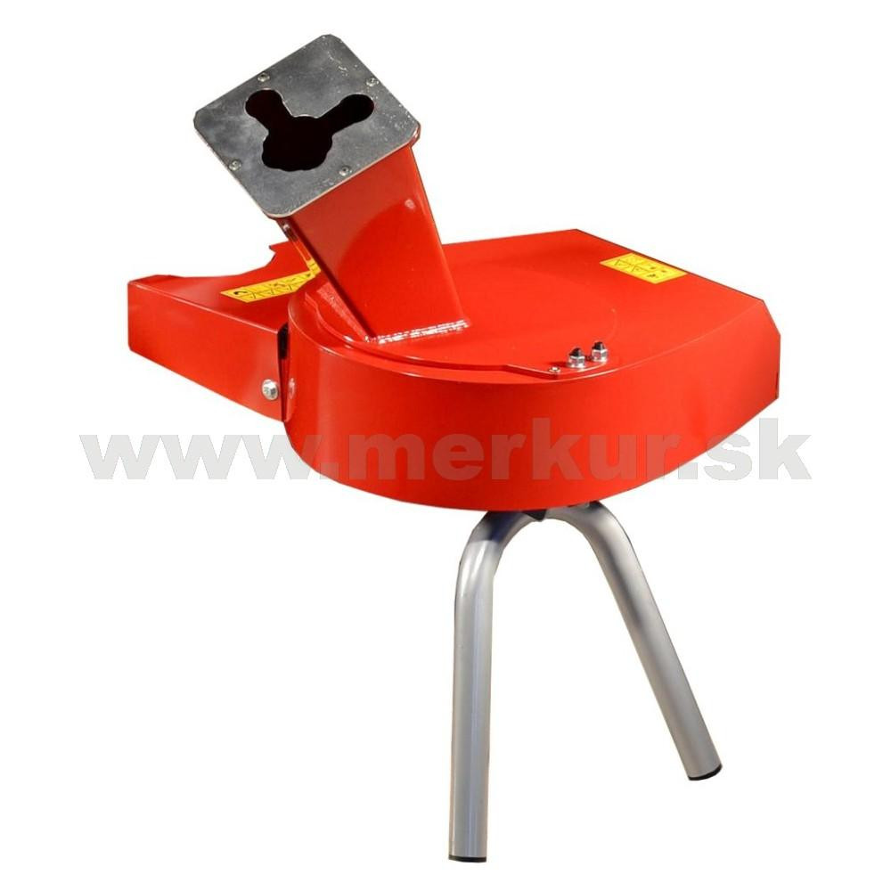Drvič záhradného odpadu DV 70 od českej firmy Dakr. Vďaka špeciálnemu tvaru hrdla sa ľahko drvia aj rozvetvené konáre. Rotujúci tanier s kalenými nožom. Max. priemer konárov 45 mm