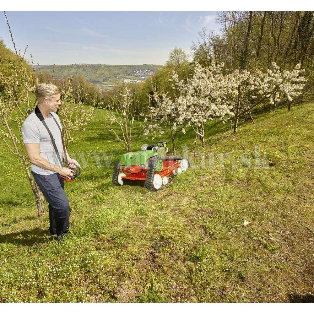 Požadovaný výkon poskytuje výkonný motor Kawasaki s výkonom 12,7 kW (17,3 k). To umožňuje bezpečné kosenie strmých svahov až do 50° (120%), napr. pozdĺž ciest, retenčných nádrží alebo železničných tratí. Aby sa zachovala priľnavosť na vlhkom alebo sypkom podklade, poskytujú stabilnú oporu gumové pásy s protišmykovým profilom výstupkov.
