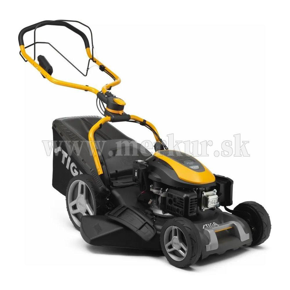 Motorová kosačka na trávu s pojazdom Stiga Combi 753 SE má záber kosenia 51 cm a hybridný zberný kôš na trávu s objemom 60 l s ukazovateľom naplnenia.