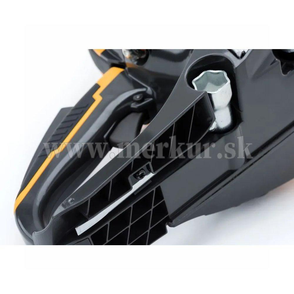 Napínací kľúč máte na dosah ruky priamo pod rukoväťou a olejové čerpadlo je automatické a nastaviteľné.