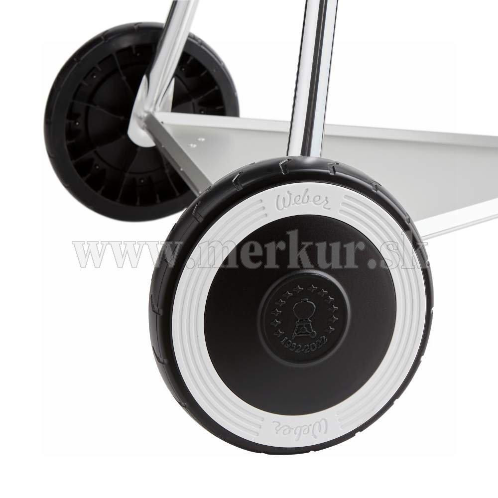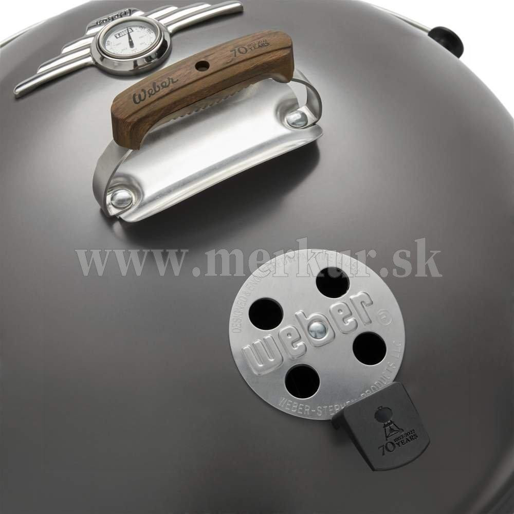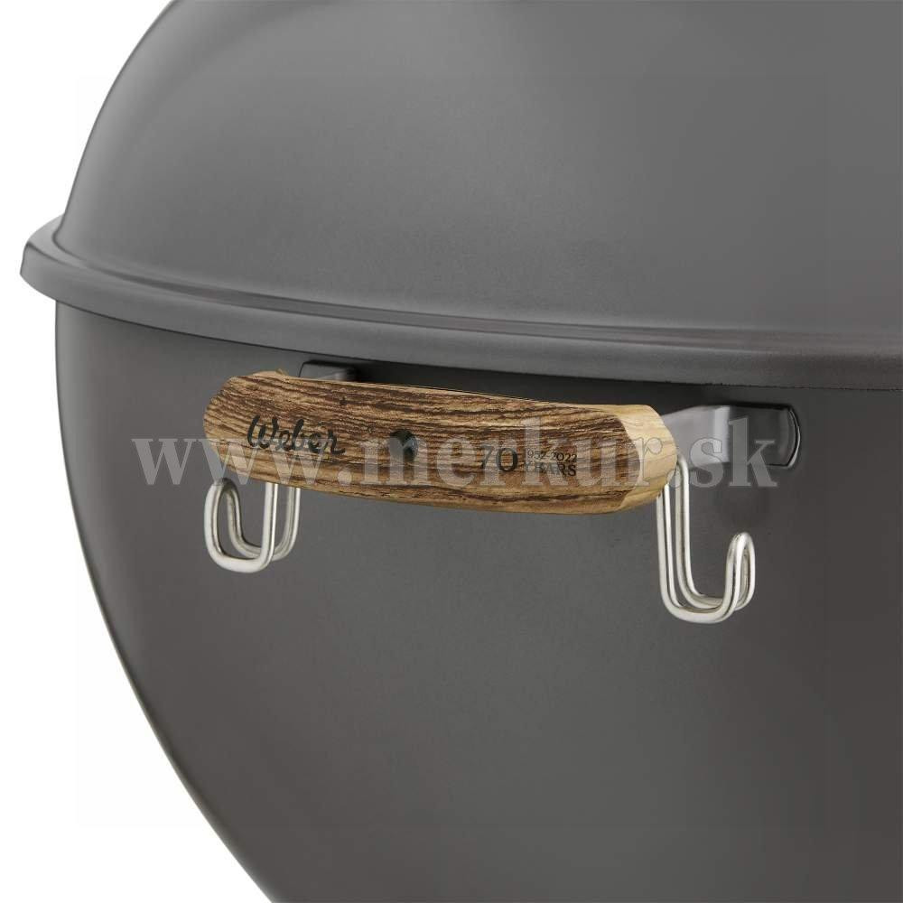 70th Anniversary Kettle v limitovanej edícii je vysokokvalitný gril Weber Kettle s tradičnými i modernými prvkami. V jeho detailne premyslenom zovňajšku možno nájsť odkazy z rôznych ér histórie značky Weber. Ručne smaltovaná hollywoodska sivá pripomína klasické filmy z 50. rokov minulého storočia, kedy gril Kettle vznikol. Medzi ďalšie retro prvky patrí pevná spodná odkladacia miska, teplomer na poklope s ozdobným krytom v štýle 50. rokov, biele disky na kolieskach a nylonové rukoväte s imitáciou dreva. To všetko tvorí celok, ktorý je dokonalou oslavou grilovania.