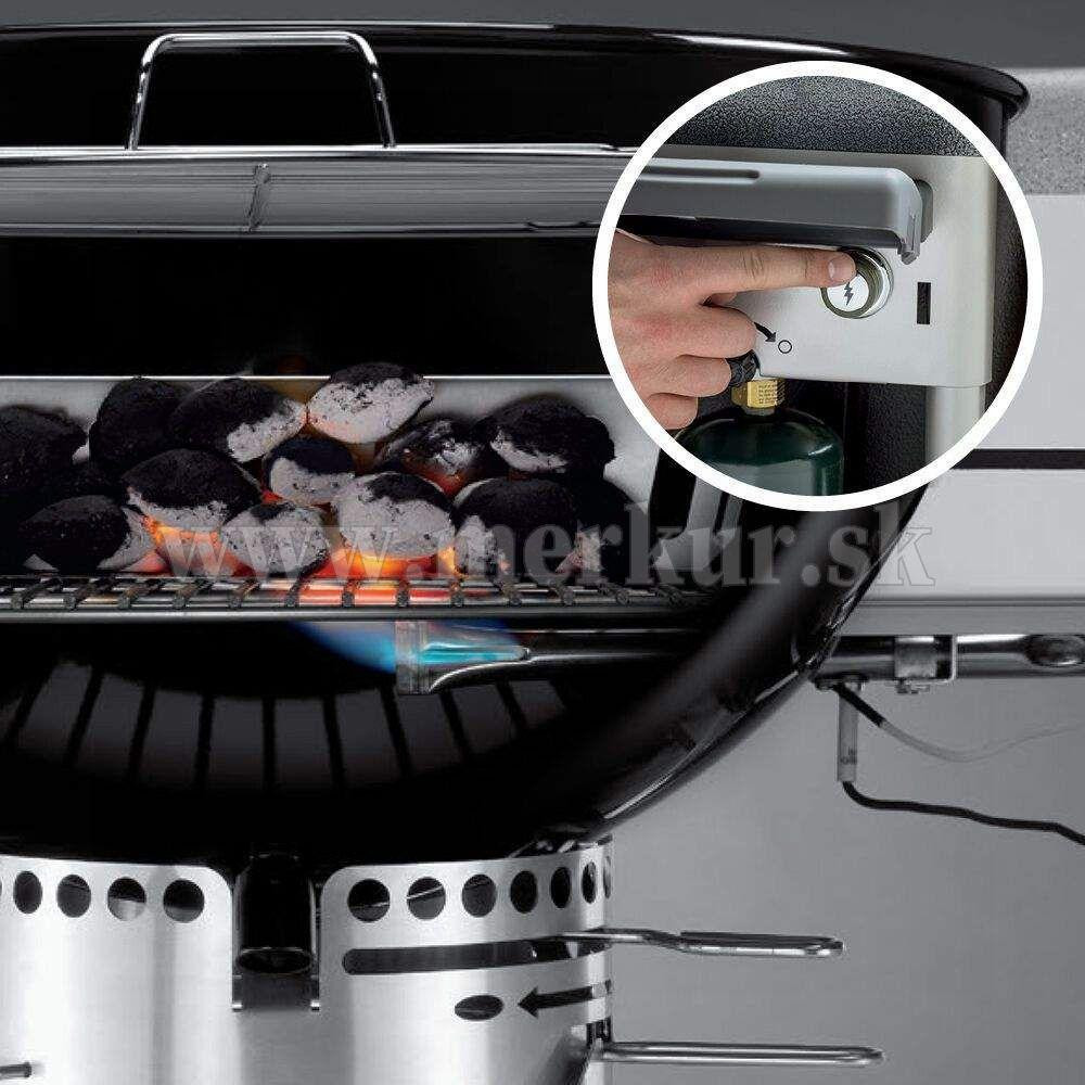 Zapáľte plameň a použite Vaše kliešte novej generácie pre grilovanie na uhlí. Jediným stlačením tlačidla Vaše uhlíky začnú žiariť a jedlo prskať. Všetko, čo zostáva, je sadnúť si späť a sledovať Váš gril na drevené uhlie Performer Deluxe GBS v akcii.