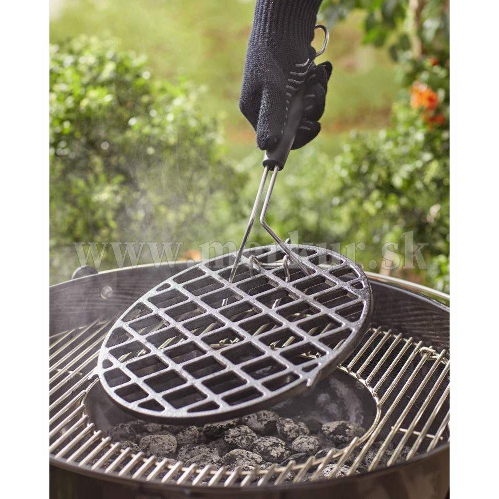 Naplňte váš grilovací rošt predjedlami, kým sa pripravuje váš steak. Akonáhle je steak opečený a predjedlá pripravené na podávanie, použite zdvihák vložky roštov Gourmet BBQ System pre nahradenie stredového roštu opekacou mriežkou pre váš hlavný chod. Zdvihák vložky roštu vám umožní jednoducho a bezpečne vytiahnuť horúci GBS rošt z grilu pre hladký priebeh večere a najedených ľudí.