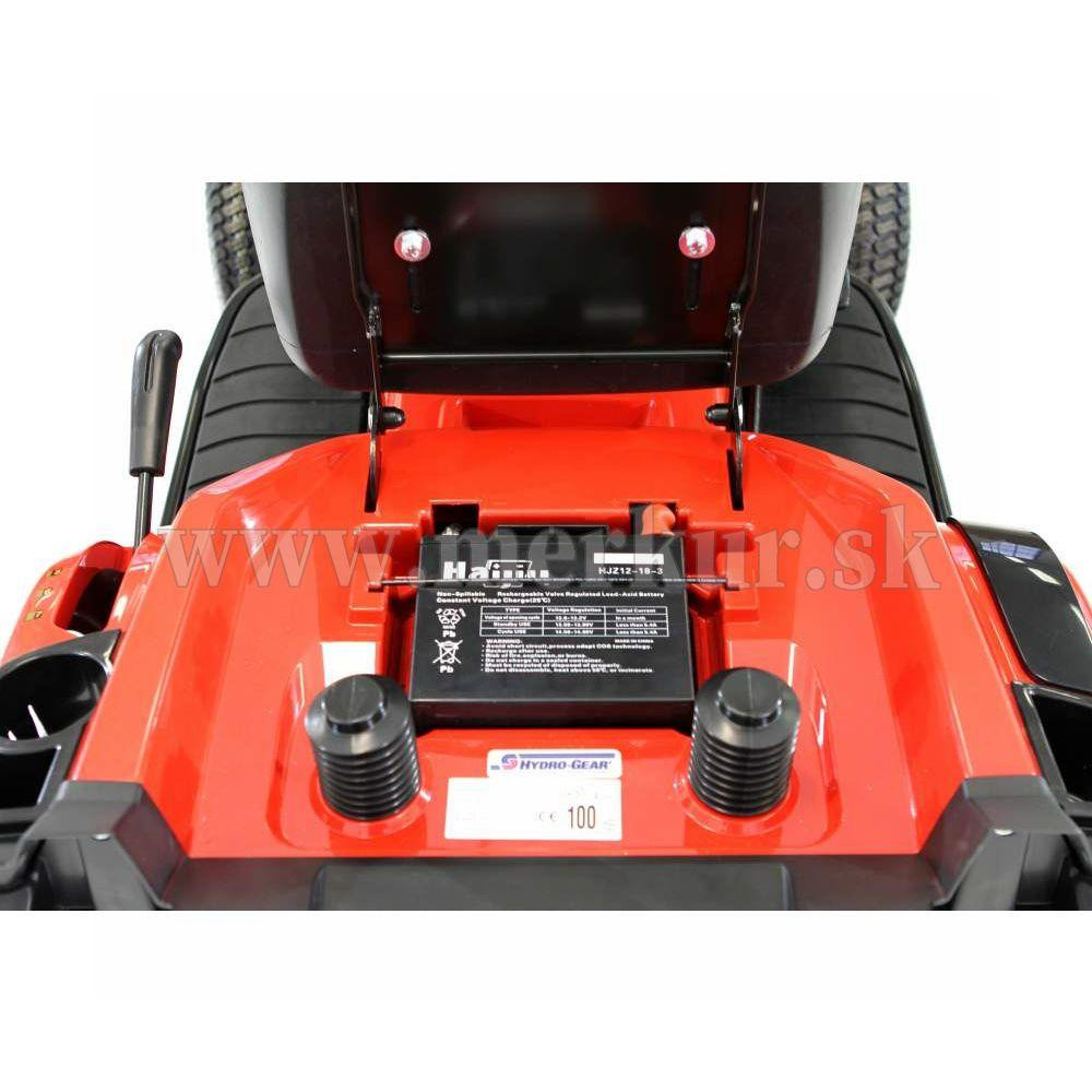 Je vybavený hydrostatickou prevodovkou Hydro Gear a zberným košom o objeme 240 litrov.