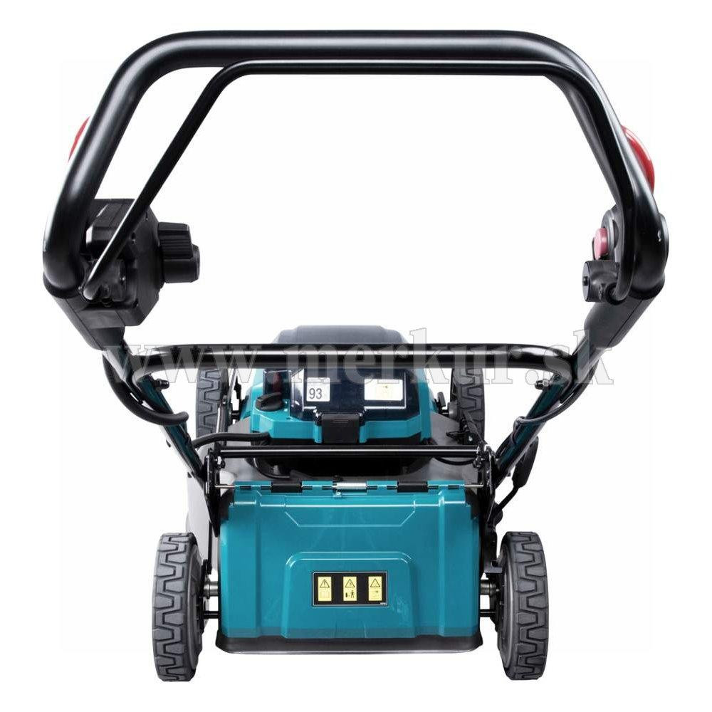 Výkonná mulčovacia akumulátorová kosačka s oceľovým skeletom a pohonom kolies.
