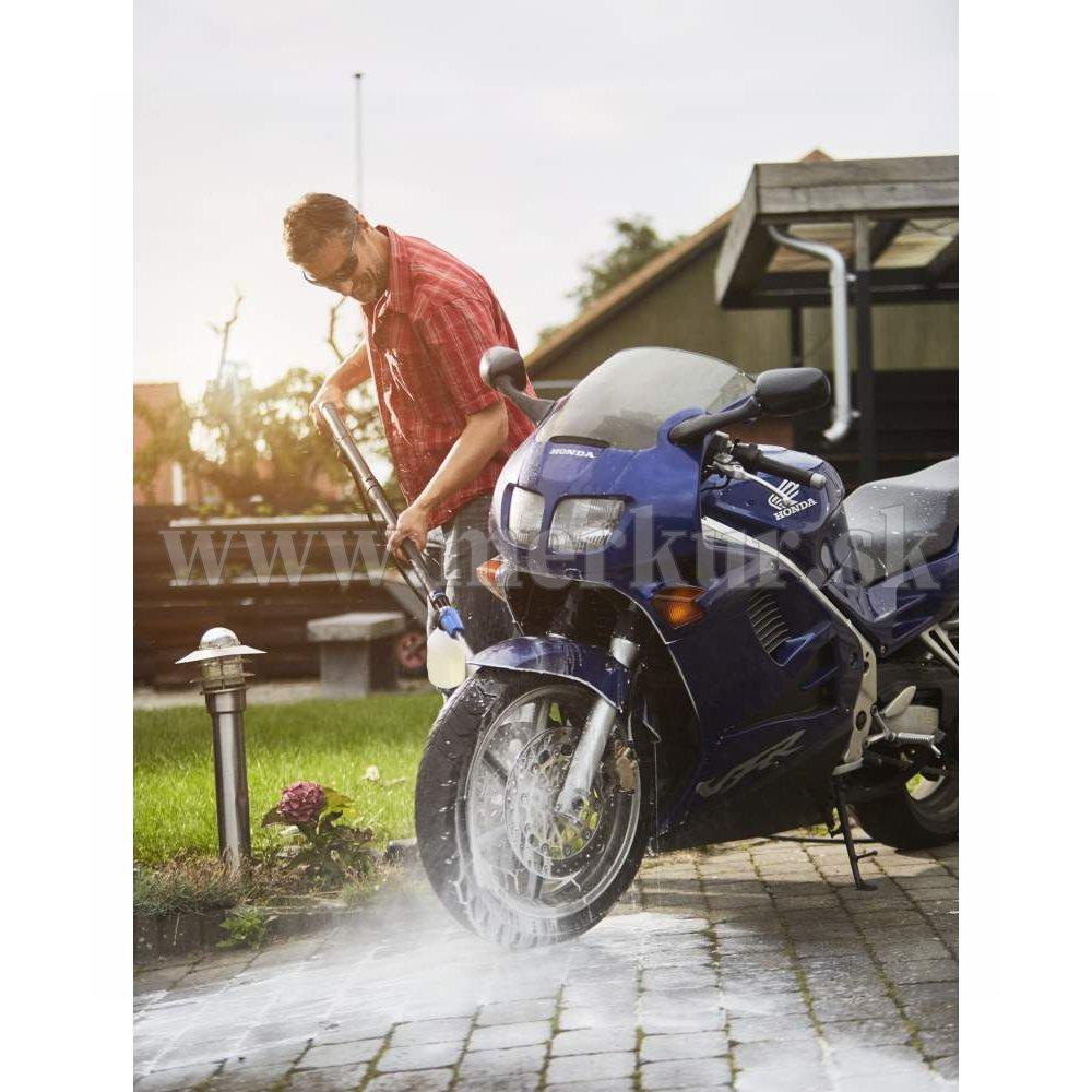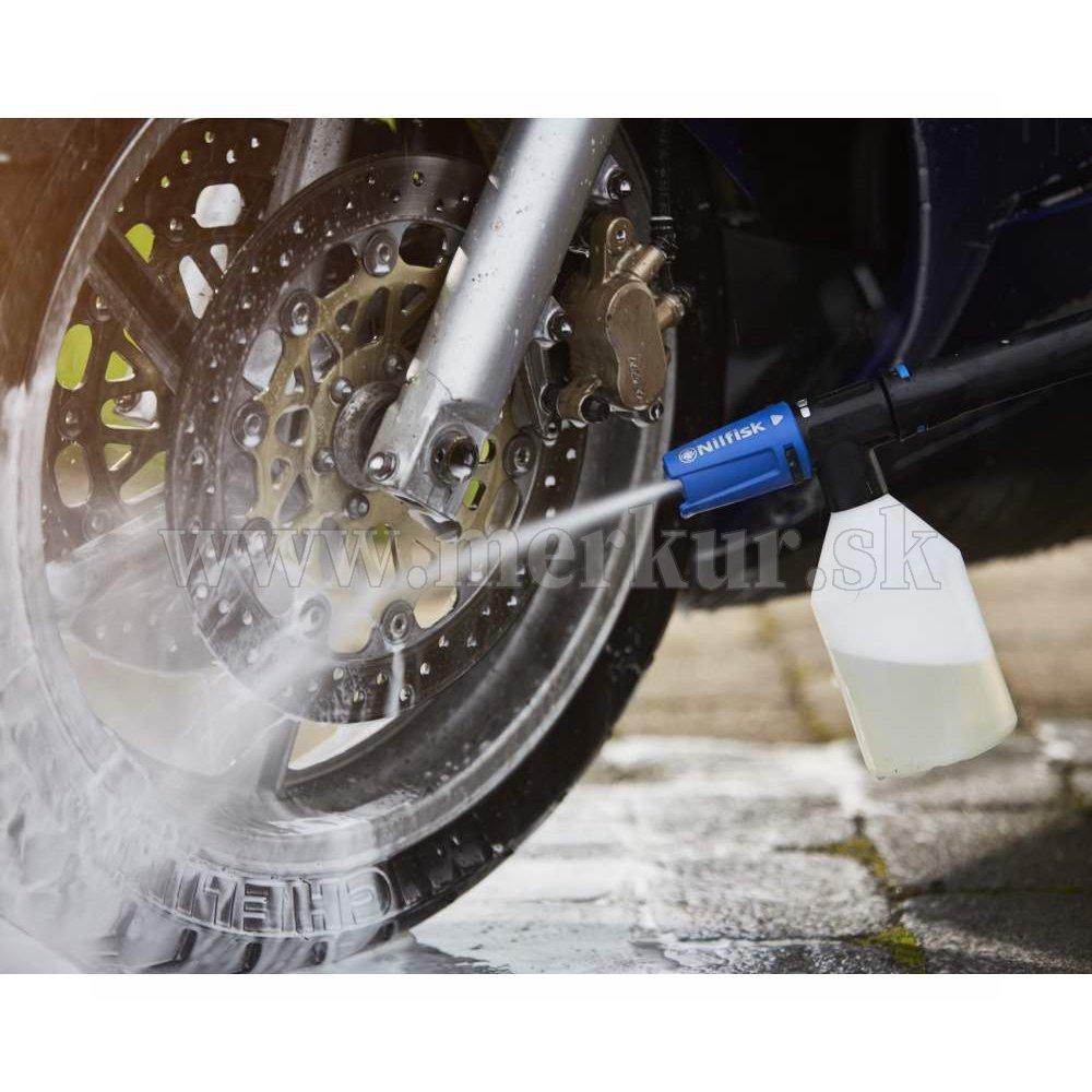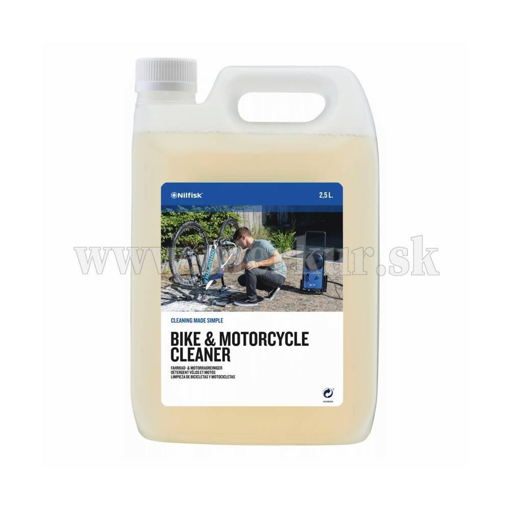 Čistiaci prostriedok na báze vody dokáže na vašom bicykli alebo motocykli zázraky. Prostriedok sa odporúča aplikovať pomocou penového postrekovača Nilfisk, je dôkladný a účinný pri odstraňovaní nečistôt, oleja a tuku z motocyklov a mestských alebo horských bicyklov, ktoré sa budú počas okamihu lesknúť ako nové.