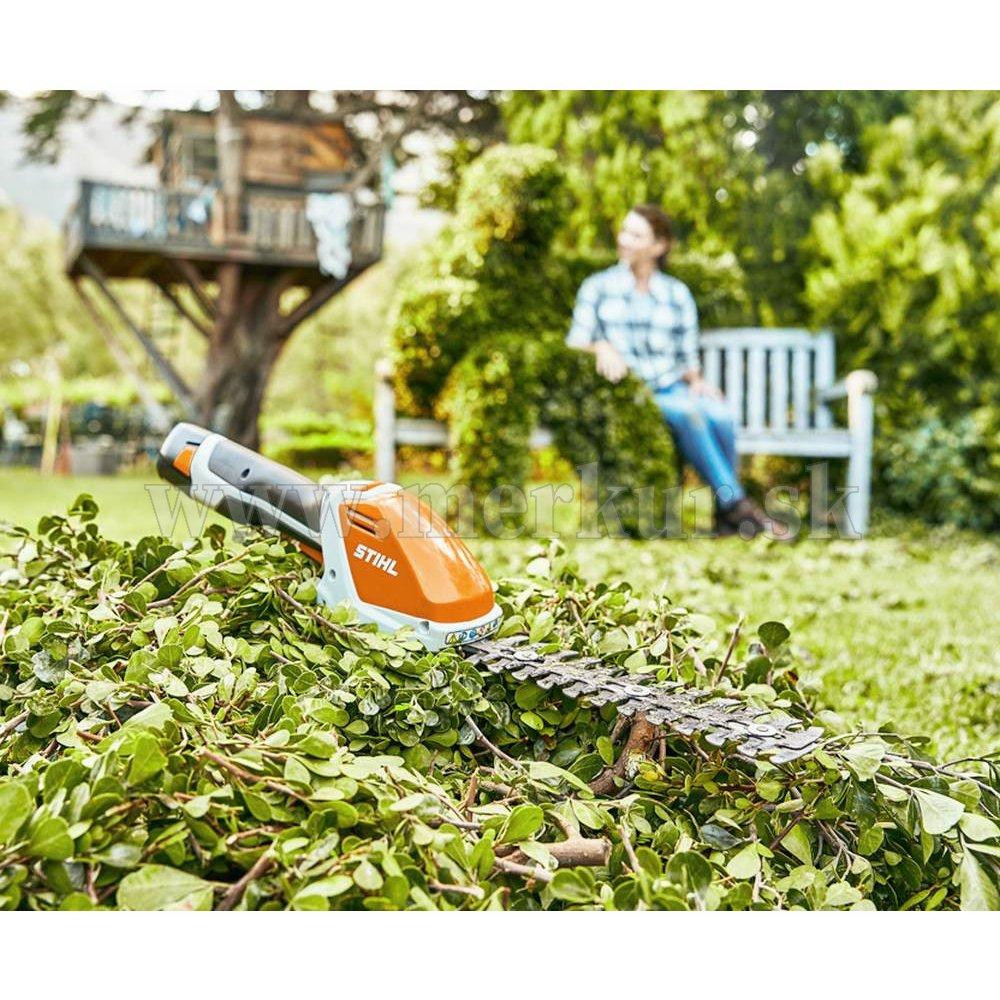 Ľahké akumulátorové nožnice na kríky s 2 nástavcami – nožom na trávu a 20cm lištou na úpravu živých plotov a okrasných stromov. Optimalizovaná geometira noža, protišmyková rukoväť. Rýchla výmena nástavca bez použitia náradia. Zobrazenie stavu nabitia. Použitý akumulátor AS 2 je kompatibilný aj s ručnou motorovou pílou GTA 26. Predáva sa bez akumulátora a bez nabíjačky.