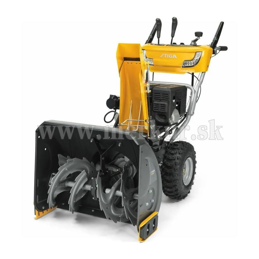 Snehová fréza je poháňaná silným motorom STIGA WS 300 s objemom 302 cm3 a 66 cm širokým ozubeným šnekom, ktorý zvládne odhodiť sneh až 10 metrov.