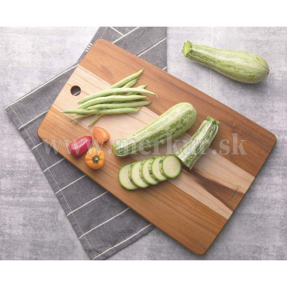 Kuchynská doska na krájanie z teakového dreva z dielne brazílskeho výrobcu Tramontina sa stane nenahraditeľnou položkou vo vašej kuchyni. Teakové drevo je charakteristické svojou dlhou životnosťou, extrémnou tvrdosťou a vysokou odolnosťou voči plesniam, hubám alebo baktériám. Jednoducho povedané, toto drevo je ideálne do kuchyne. Drevené dosky sú vo všeobecnosti veľmi hygienické, pretože bránia šíreniu mikroorganizmov. Nevhodné do umývačky riadu. Pri ručnom umývaní nepoužívať drsné materiály. Skladovať v suchu a na dobre vetranom mieste.