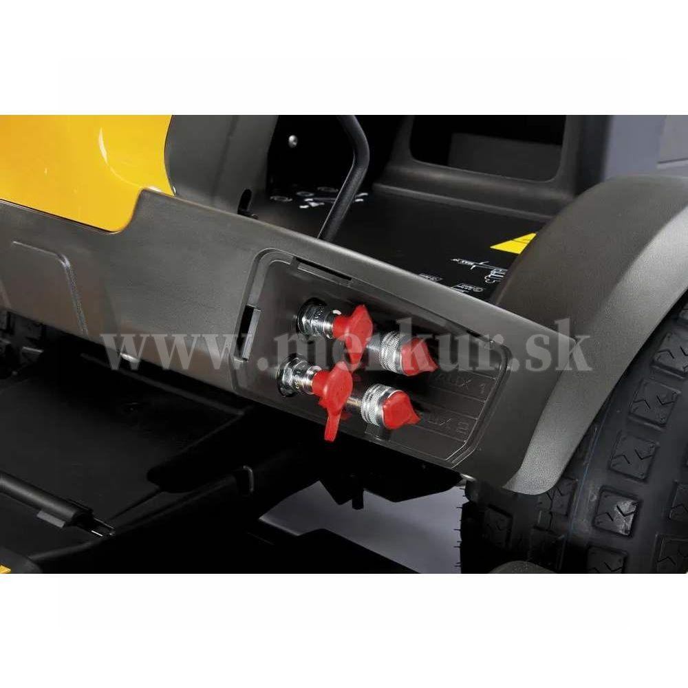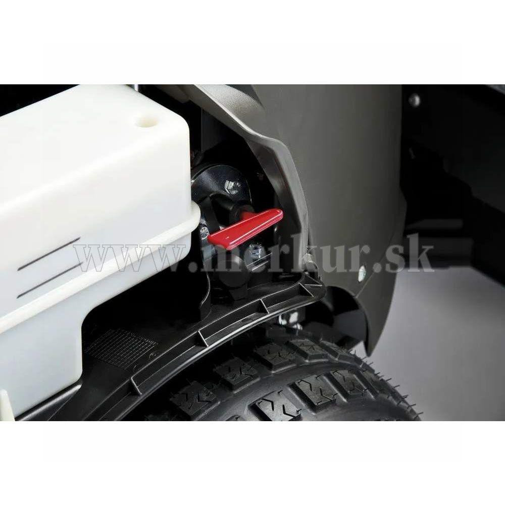 Možnosť dokúpiť mulčovaciu a žaciu sadu, zametaciu metlu, snehovú frézu alebo radlicu alebo vozík. Vďaka týmto doplnkom môžete tento záhradný traktor využiť ako využiť ako mulčovací traktor, na odhŕňanie snehu, na posýpanie ciest a chodníkov a iného.