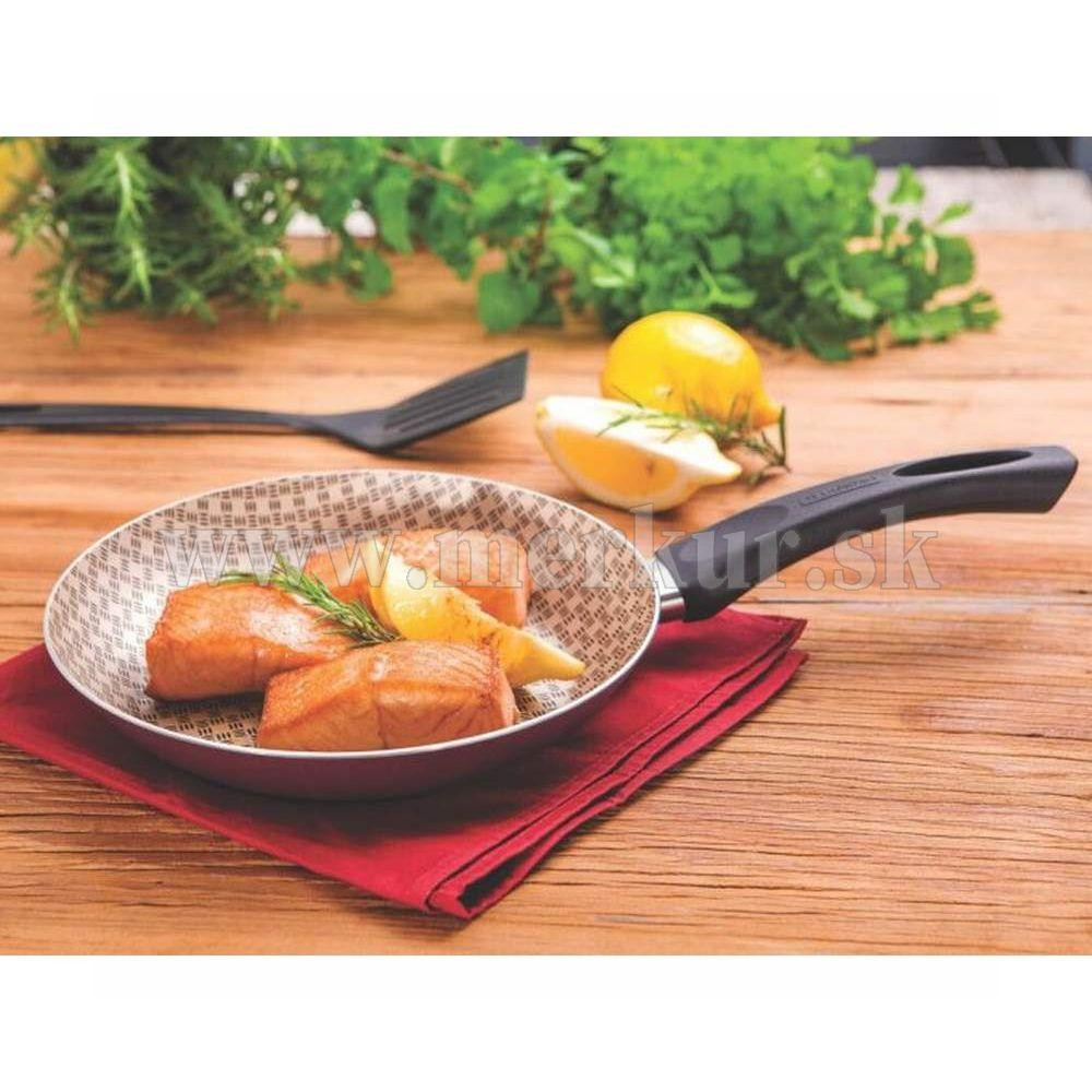 Panvica s obracačkou z rady Paris s priemerom 24 cm od brazílskeho výrobcu Tramontina je vyrobená z hliníka a potiahnutá nepriľnavým materiálom Starflon Max zvnútra aj zvonka. Rukoväte sú tepelne odolné, čim zaisťujú bezpečné použitie. Vhodná na plynový, elektrický a keramický ohrev. Pretože má nelepivý povrch, ľahko sa čistí a je vhodná do umývačky riadu. Nadčasový aktraktívny dizajn v bordovo-béžovej farbe oživí každú kuchyňu.