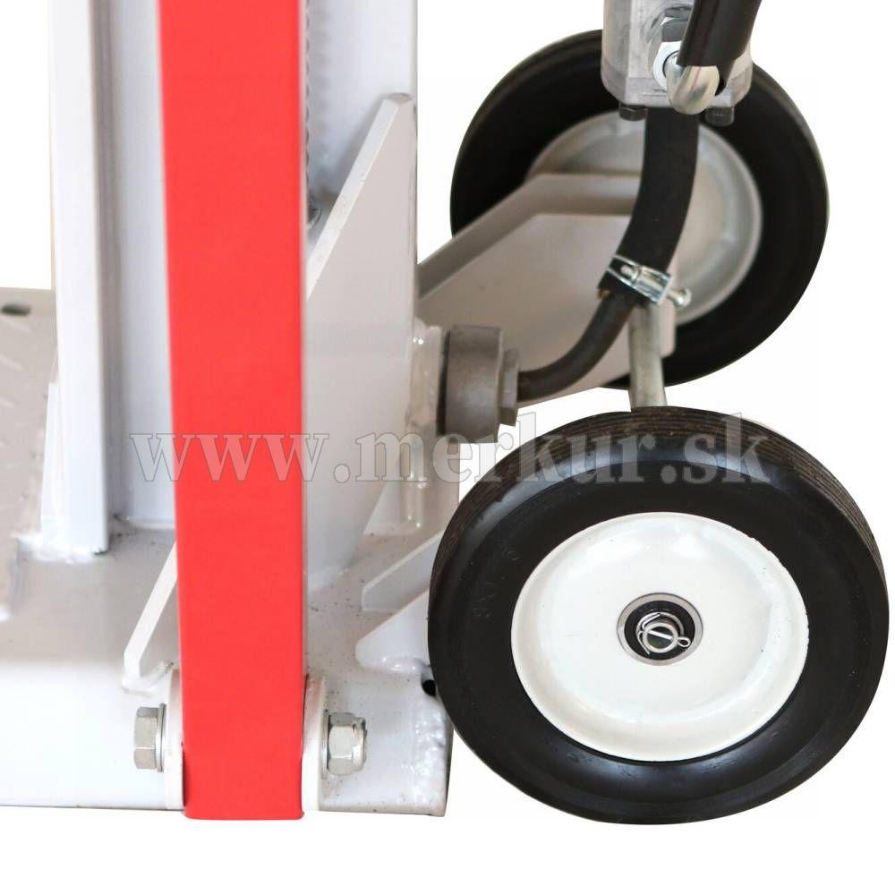 Transportné kolesá, tretie pomocné koleso u vodiacich rukovätí, možnosť zníženia piestu a sklopenia bočných opier uľahčuje manipuláciu so strojom a jeho skladovanie.