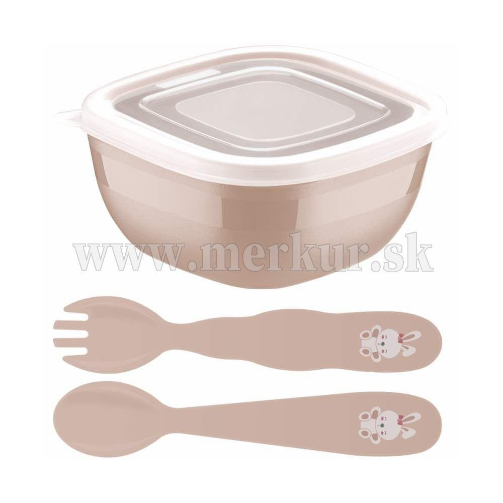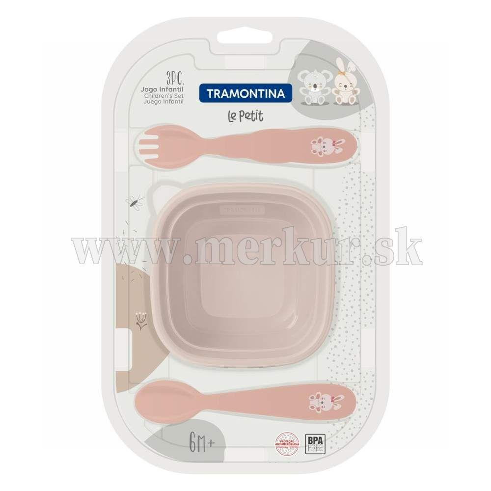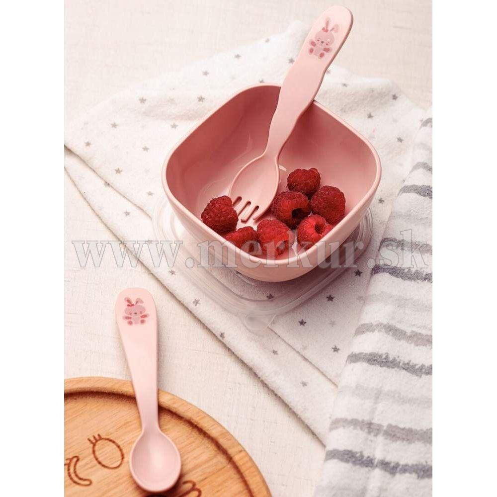 Detský jedálenský set z kolekcie Le Petit pozostáva z 3 položiek - lyžička, vidlička a nádoba na jedlo. Produkty sú vyrobené z kvalitného polypropylénu s antimikrobionálnou ochranou, bez obsahu BPA. Dóza je vhodná na rýchly ohrev pokrmu v mikrovlnke a tiež na skladovanie v mrazničke. Minimalistický vizuál je v príjemnej pastelovej farbe obohatený o obrázok zajka na rukovätiach príboru. Tento set bude sprevádzať vaše dieťa v rôznych fázach vývoja - od prvých tuhých detských príkrmov, až po dobu pokiaľ sa nenaučí používať jedálenský príbor samo.