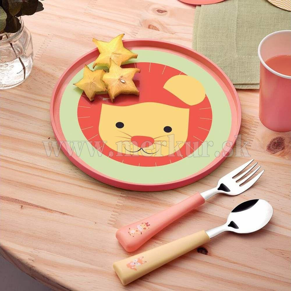 Detský 3-dielny jedálenský set poteší nie len rodiča, ale svojim hravým dizajnom aj každé dieťatko. Vyrobený je z nehrdzavejúcej ocele a polypropylénu bez BPA s antimikrobiálnou ochranou. Rukoväte príbora sú ergonomicky tvarované a ľahko sa nimi manipuluje. Jeho dizajn ako aj vizuál tanierika je doplnený o detský vzor v podobe zvieratiek. Vhodné pre deti od 12 mesiacov.