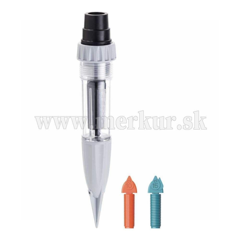 Patentovaný kvapkovač, ktorý používa bežné plastové fľaše na automatické zavlažovanie rastlín v črepníkoch. Nie je potrebné žiadne pripojenie k vodovodnému kohútiku alebo elektrine. Kompatibilné so všetkými plastovými flašami do 2 litrov. Kvapkovač je vybavený dvomi tryskami. Modrá tryska dávkuje 15 cl / deň, oranžová tryska dávkuje 10 cl / deň.