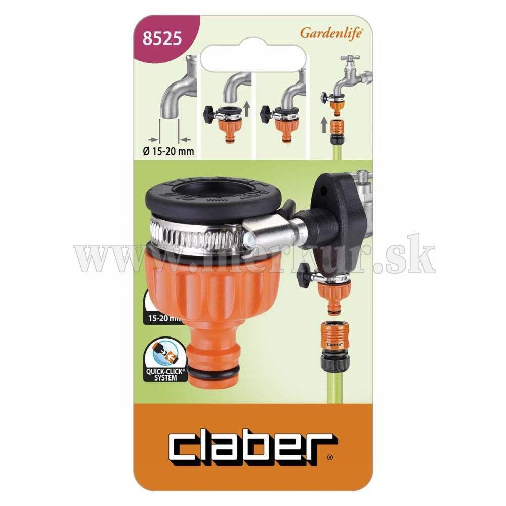 Prípojka na hladký kohútik na kruhovú koncovku bez závitu. S priemerom 15 – 20 mm. Telo prípojky je vyrobené z ABS plastu, svorka z nehrdzavejúcej ocele. Pripojenie na kohotik je vyrobené z gumy.