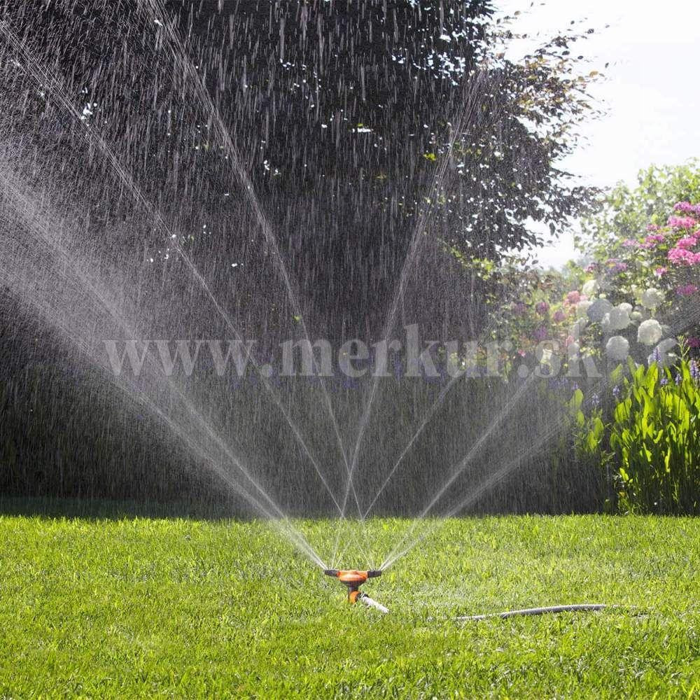 Statický zavlažovač s dvoma otočnými ramenami s nastaviteľnými tryskami. Umiestňuje sa tam, kde je to potrebné, pomocou špeciálne tvarovaného hrotu, ktorý je navrhnutý tak, aby zaistil maximálnu stabilitu v zemi. Postrekuje kruhovú plochu dookola miernym dažďom. Maximálna zavlažovaná plocha 64 m². Rozmery produktu: šírka: 59 mm, výška: 193 mm, hĺbka: 35 mm, hmotnosť: 45 g.