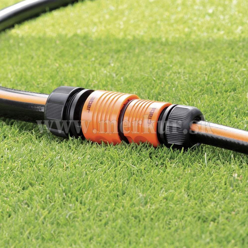 Konektor na spojenie dvoch hadíc s rýchlospojkou Max-Flow (3/4) a rýchlospojkou Quick-Click (1/2) inštalovanými na koncoch hadíc.