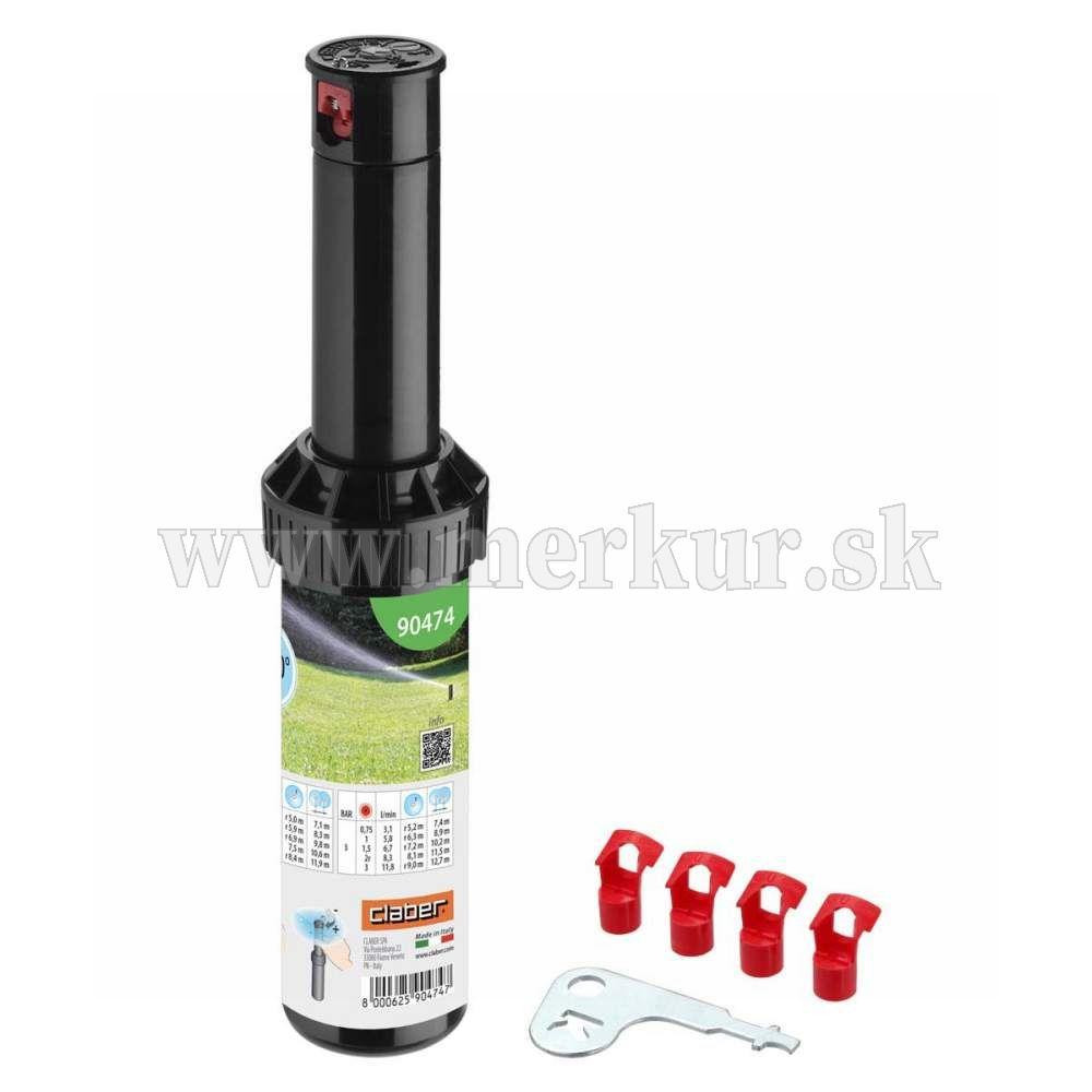Turbínový postrekovač so stredným dosahom s vymeniteľnými tryskami. Pracovný oblúk je nastaviteľný od 40° do 360° pomocou jednoduchého skrutkovača s štrbinovým hrotom. Indikátor umiestnený na veku ukazuje zvolený pracovný rozsah. Zavlažovač je možné nastaviť pred montážou. Špeciálny mechanizmus zabraňuje poškodeniu ozubených kolies počas nastavovacej fázy. Súčasťou postrekovača je odnímateľný vnútorný filter. Prevádzkový tlak od 1,5 do 4 barov. Polomer od 4 do 9 m. 1/2”závitová základňa (15-21 mm).Vzdialenosť zo zeme 4” (10 cm).