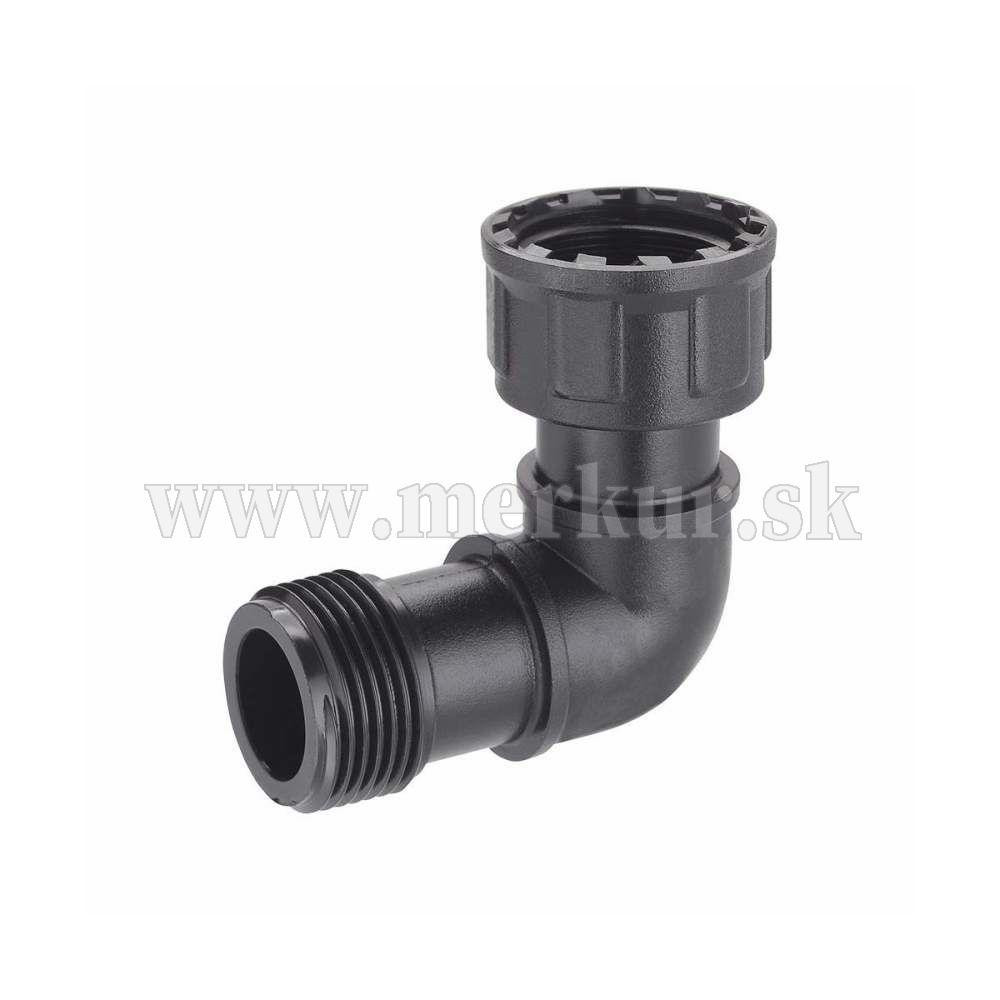 Prípojka v tvare L s 1″ vonkajší závitom – 3/4″ vnútorným závitom sa používa na pripojenie elektroventilu.