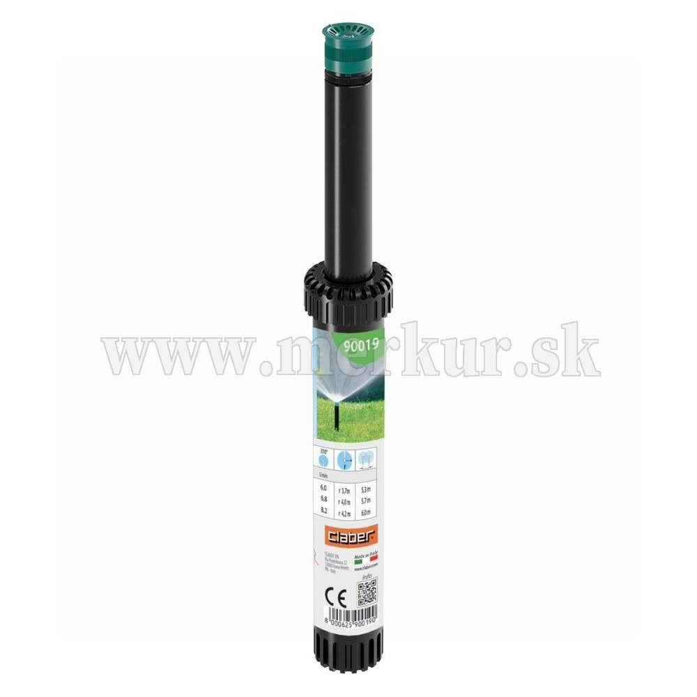 Statický výsuvný zavlažovač profesionálnej kvality s nastaviteľnou hlavou od 0° do 350°, ktorý zaručuje rovnomerné zavlažovanie a minimálnu spotrebu vody (6 l/min.). Je vybavený skrutkou na nastavenie prúdnice so šesťhrannou vložkou, nerezovou vratnou pružinou, filtrom, samomaznou spojkou a gumovým ventilom proti prelievaniu s protimrazovým zariadením. Výška od zeme 4” (10 cm). Zavlažovaná plocha max. 55 m². Rozmery produktu: šírka: Ø 37 mm, výška: 110 mm, hĺbka: Ø 37 mm.