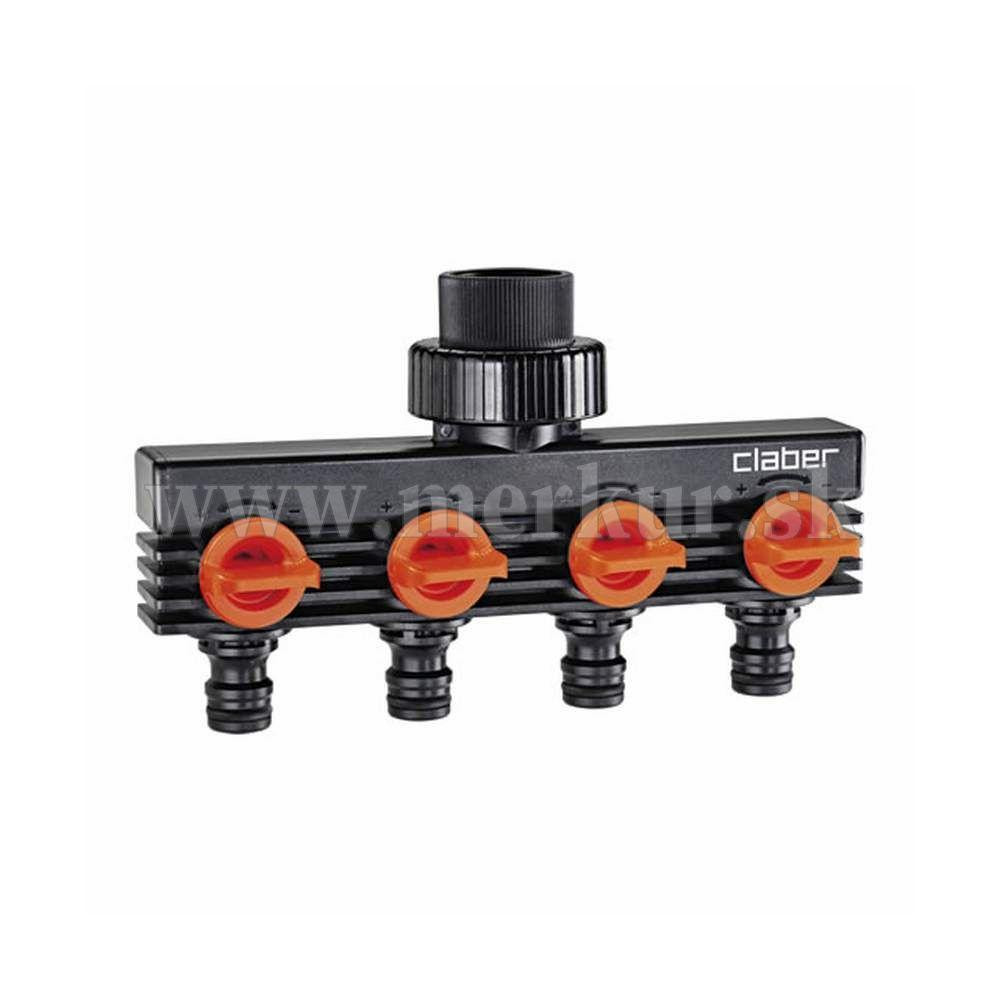 Maximálne všestranná rozvodka na pripojenie 4 hadíc k jednému kohútiku, reguluje prietok vody nezávisle na každom smere.