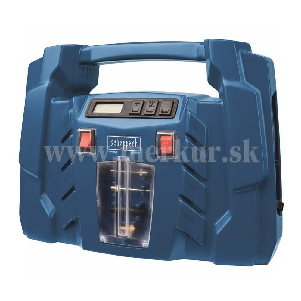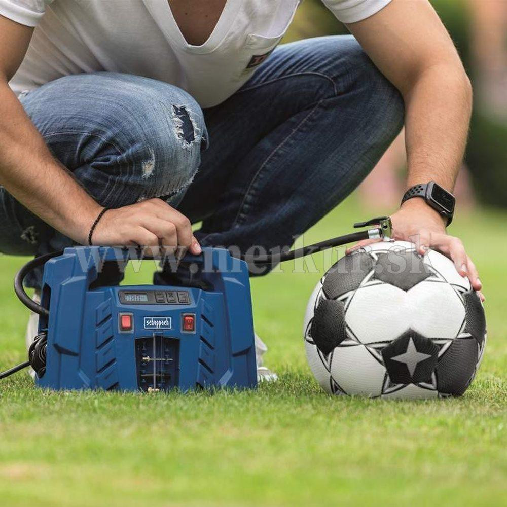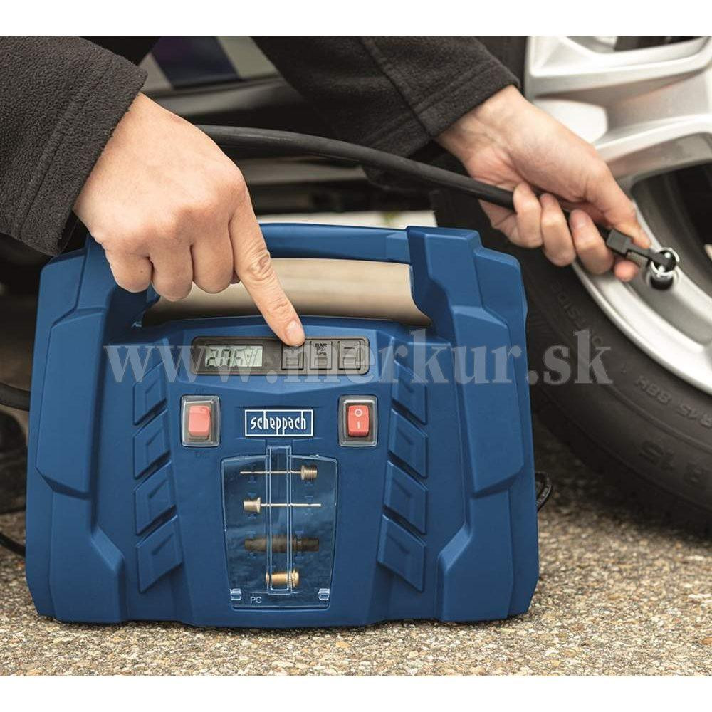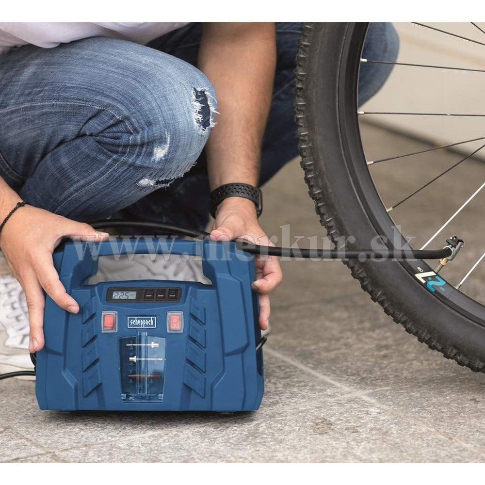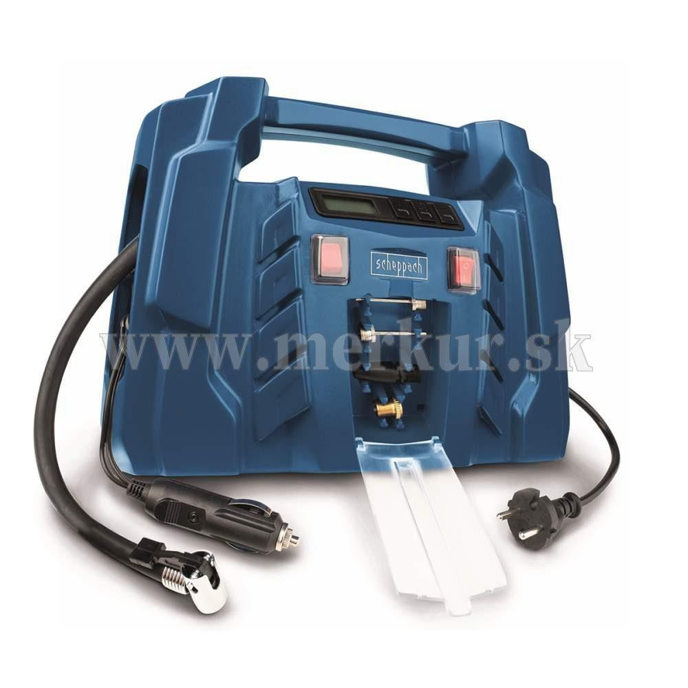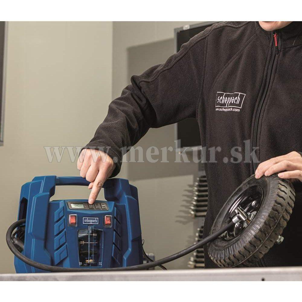 Kompresor Scheppach AIR FORCE 5 je malý, ale užitočný pomocník, ktorého môžete napájať ako z bežnej siete na 230 V, tak aj z bežnej automobilovej zásuvky na 12 V. Uplatní sa tak nielen ako praktický, skladný, a ľahký kompresor vo vašej dielni alebo garáži, ale využijete ho aj na cestách v aute alebo karavane. Obsluha je veľmi jednoduchá. Na digitálnom displeji vidíte aktuálnu hodnotu tlaku. Ten si ide taktiež v rozmedzí 0,1 až 8 bar predvoliť a po dosiahnutí nastaveného tlaku sa kompresor automaticky vypne. Vďaka veľkému množstvu rôznych koncoviek a maximálnemu tlaku až 8 barov si hravo poradí s fúkaním pneumatík motocyklov, bicyklov, áut, terénnych štvorkoliek, lôpt, matracov, nafukovacích člnov, raftov a pod. Všetko príslušenstvo, vrátane dvoch elektrických káblov, tlakovej hadice 0,6 ma štyroch rôznych koncoviek je múdro ukryté vo vnútri kompresora, takže sa Vám nič nestratí. Pohodlné madlo uľahčí prenášanie. Kompresor je vybavený najmodernejším motorom s bezolejovou technológiou. Kontrola oleja, jeho doplňovanie alebo výmena tak vôbec nie je potrebná a kompresor je tak vždy pripravený odviesť svoju prácu. Jeho rozmery a váha iba 1,9 kg ho tiež predurčujú na využitie pri stanovaní, kempovaní a iných outdoorových aktivitách. Dĺžka kábla 230 V: 1,8 m Dĺžka kábla 12 V: 4 m Dĺžka tlakovej hadice: 0,6 m Nastavenie požadovaného tlaku: ÁNO