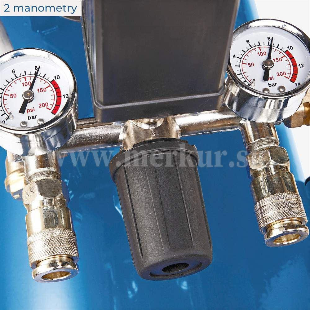Motor má vysoký výkon 3 HP, ktorý zaručuje veľmi rýchle opätovné natlakovanie 50 litrovej nádrže. Všeobecnou a dôležitou vlastnosťou dvojpiestnych kompresorov je potom ich dlhšia životnosť.
