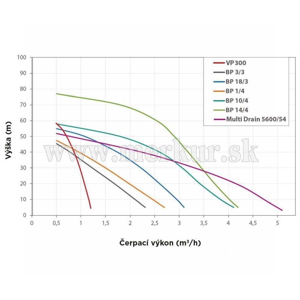 Pokiaľ je hladina nižšie ako 9 m, je potrebné použiť hlbinné čerpadlo. Profesionálne hlbinné čerpadlá ELPUMPS dokážu uspokojiť najrôznejšie potreby zákazníkov. Od ekonomickej a veľmi obľúbenej rady VP 300, kde je hlavným kritériom vynikajúca cena, až po modely s motorom 1 800 W alebo dopravnou výškou 80 m. Pre zákazníkov, ktorí majú užšie vrty (od 95 mm) je k dispozícii model BP 18/3 a BP 3/3 s užším priemerom. Model BP 1/4 je zase konštruovaný aj do studní s vyšším obsahom piesku vo vode. Plášte z nerezu, akosťou materiál obežných kolies a špičkové motory sú zárukou veľmi dlhej životnosti. Modely radu BP sa samozrejme skladajú z dvoch častí (hydraulická a motorová), čo nielen výrazne uľahčuje akékoľvek servisné práce, ale pri vážnom poškodení čerpadla stačí vymeniť len tú poškodenú časť a nie celý stroj. Masívne liatinové závesné oká potom slúžia na spoľahlivé zaistenie stroja vo vrte. Ako príslušenstvo je možné objednať hydrokontrolu DSK 10. Model Multi Drain sa zase výborne hodí do tradičných kopaných studní, nádrží či bazénov. Vo svojej kategórii sa jedná o špičkový model s vysokým tlakom na výstupe, takže mu nerobí problém ani pripojenie na zariadenie s viacerými výstupmi (napr. závlahový systém). Už v štandarde navyše obsahuje plavákový spínač, ktorý ho chráni pri poklese hladiny vody. Možnosti využitia: Čerpanie čistej vody z vrtov, studní, nádrží. Zásobovanie chát a rodinných domov vodou. Zásobovanie závlahových systémov, postrekovačov trávnikov, umývacích systémov a ďalších tlakových systémov vodou. Technika: Oproti obdobnej konkurencii má model VP300 až dvojnásobnú hrúbku steny vyrobenú z hliníka (nie plastu a unikátny systém uloženia vibračnej membrány, zaisťujúcej čerpadlu dlhú životnosť. Ostatné modely Elpumps majú plášť z akostnej európskej nerezovej ocele (nie z bežnej ocele). , zaisťujúce čerpadlu dlhú životnosť, ľahkú údržbu a dokonalý vzhľad.Model BP 1/4 a 3/3 má mosadzné obežné koleso, odolné aj vo vode s vyšším obsahom piesku.Ostatné modely radu BP majú systém mnohostupňových obežných kolies – 10, 14 a 18 stupňov podľa označenia modelu.Hriadele sú utesnené profesionálnym dvojitým tesnením, ktoré sa skladá z pružinového tesnenia a keramicko-kremíkového tesnenia.Všetky modely radu BP sa skladajú z dvoch častí, oddelených inoxovým filtrom.Motorová časť s káblom a štandardne dodávanou elektrickou skrinkou je tak oddelená od hydraulickej časti To významným spôsobom zjednodušuje prípadné servisné práce a šetrí náklady pre užívateľov v prípade, že jedna z častí je nenávratne poškodená a musí sa vymeniť. Motor je chránený tepelnou poistkou a pre prípad zablokovania obežných kolies aj nadprúdovou ochranou. Model Multi Drain má systém nasávania brániaci víreniu nečistôt na dne studne. Vďaka konštrukcii s niekoľkonásobným obežným kolesom sa skvele chladí a môže potom pracovať po dlhú dobu bez náznaku prehriatia. Vďaka nerezovému hriadeľu s axiálnym keramickokremíkovým tesnením a telu čerpadla tiež z nerezovej ocele, má čerpadlo dlhú životnosť a je prakticky bezúdržbové.
