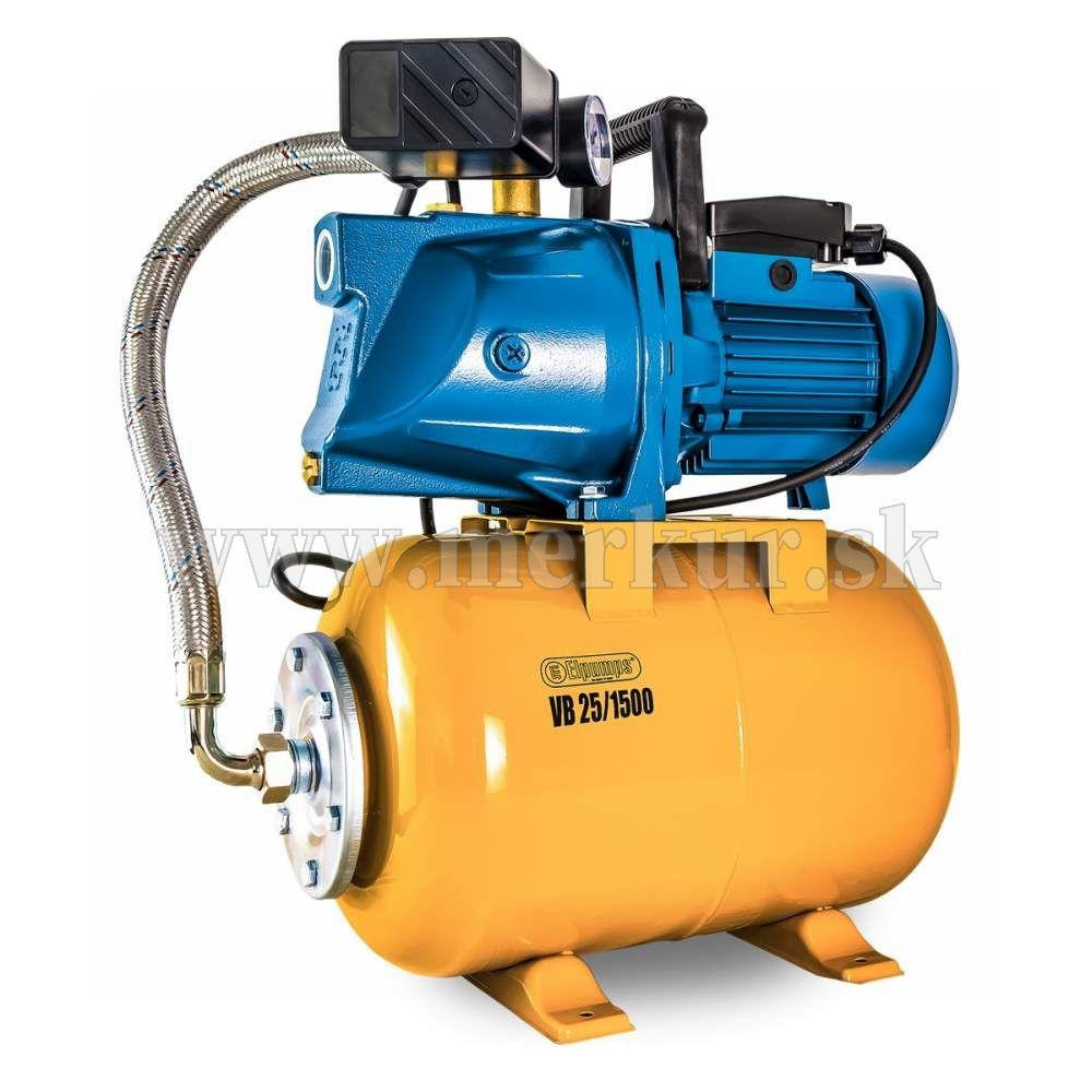 Domáce vodárne ELPUMPS spĺňajú všetky potreby zákazníka na zásobovanie domu alebo záhrady pitnou či úžitkovou vodou. Základom bezproblémového chodu a dlhej životnosti sú tiché motory s výkonom minimálne 800 W. Iba takto silné motory majú dostatočnú výkonovú rezervu na to, aby u nich nikdy nenastalo preťaženie či prehriatie, ktoré by mohlo spôsobiť zničenie motora. Vnútorné aj vonkajšie časti sú vyrobené z antikoróznych materiálov. Zákazník môže podľa potrieb voliť medzi tlakovou nádobou s objemom 25 alebo 50 litrov. Kovové oporné nohy zaisťujú dobrú stabilitu stroja. Vodárne je možné dovybaviť účinným predfiltrom 1l. Model VBP je osadený čerpadlom s implementovaným predfiltrom s objemom 2 l. Možnosti využitia: Po otočení vodovodným kohútikom vodáreň pripojená na zdroj vody, nádrž s vodou a pod. sama zopne a vytlačí vodu k odbernému miestu. Zaistenie domácnosti pitnou alebo úžitkovou vodou – zavlažovanie, wc splachovače, vodovodné batérie, práčky, apod. Podpora vodovodnej siete. Odber dažďovej vody z nádrží, cisterien. Technika: Čerpadlo má samonasávaciu konštrukciu, tzn. pri uvedení do prevádzky je potrebné naplniť iba samotné čerpadlo. Vnútorné konštrukčné prvky čerpadla sú vyrobené zo špeciálneho odolného plastu, takže pri dlhšom odstavení nehrozí ich korózia. Skriňa čerpadla je vyrobená z liatiny alebo špeciálneho odolného plastu (model VBP). Hriadeľ čerpadla je utesnený profesionálnym dvojitým tesnením, kombinujúcim pružinové a keramicko-kremíkové tesnenie. Modely s označením B majú heavy-duty mosadzné obehové koleso, ktoré má výborné antikorózne parametre, je ďaleko odolnejšie voči abrazívnemu vplyvu nečistôt (čiastočky piesku ap.) a vydržia bez deformácií vplyvom tepla aj prípadný beh naprázdno (bez vody). Motor je špeciálne hermeticky utesnený proti vniknutiu vody a je chránený tepelnou poistkou. Stroje majú nadpriemernú životnosť, pretože okrem mechanického tesnenia nie sú v tele čerpadla žiadne súčiastky, na ktoré pôsobí oter. Tlaková nádoba je vyrobená z hrubostenného plechu (pri modeli VBP z nerezu). Vnútri nádoby je gumová výstelka. To zaručuje bezpečnosť pri prevádzke a výbornú tesnosť nádoby po dlhú dobu. Nádoba je vybavená presným tlakomerom na kontrolu výstupného tlaku vodárne a hydrokontrolou pre automatické spínanie čerpadla.