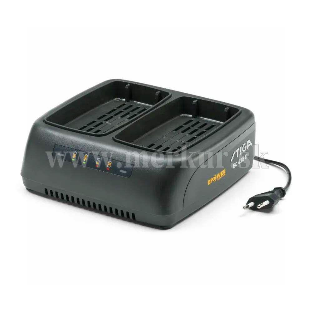 Štandardná nabíjačka batérií EC 415 D, kompatibilná so všetkými 48V batériami. K dispozícii sú dva nabíjacie sloty každý s nabíjacím prúdom 1,5 A. EU koncovka.