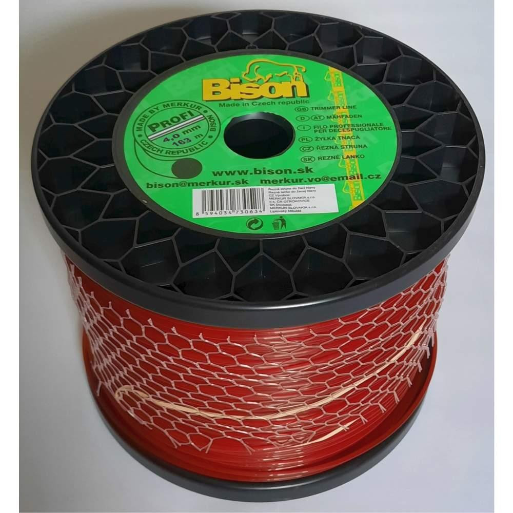 BISON PROFI je vysokokvalitné profesionálne žacie lanko kruhového prierezu červenej farby vyrobené zo zušľachteného kopolyamidu 6/12, materiálu s trvanlivosťou vysoko prevyšujúcou predávané silónové a štandardné nylonové lanká na našom trhu.