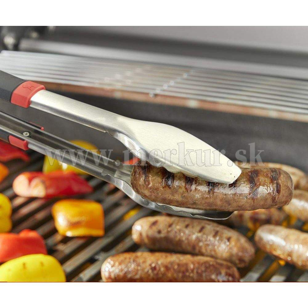 Naberajte a obracajte steaky či zeleninu s ľahkosťou. Toto základné grilovacie náradie má blokovací mechanizmus, ktorý uzavrie kliešte a umožní ich praktické skladovanie, a zároveň je vhodné do umývačky riadu.