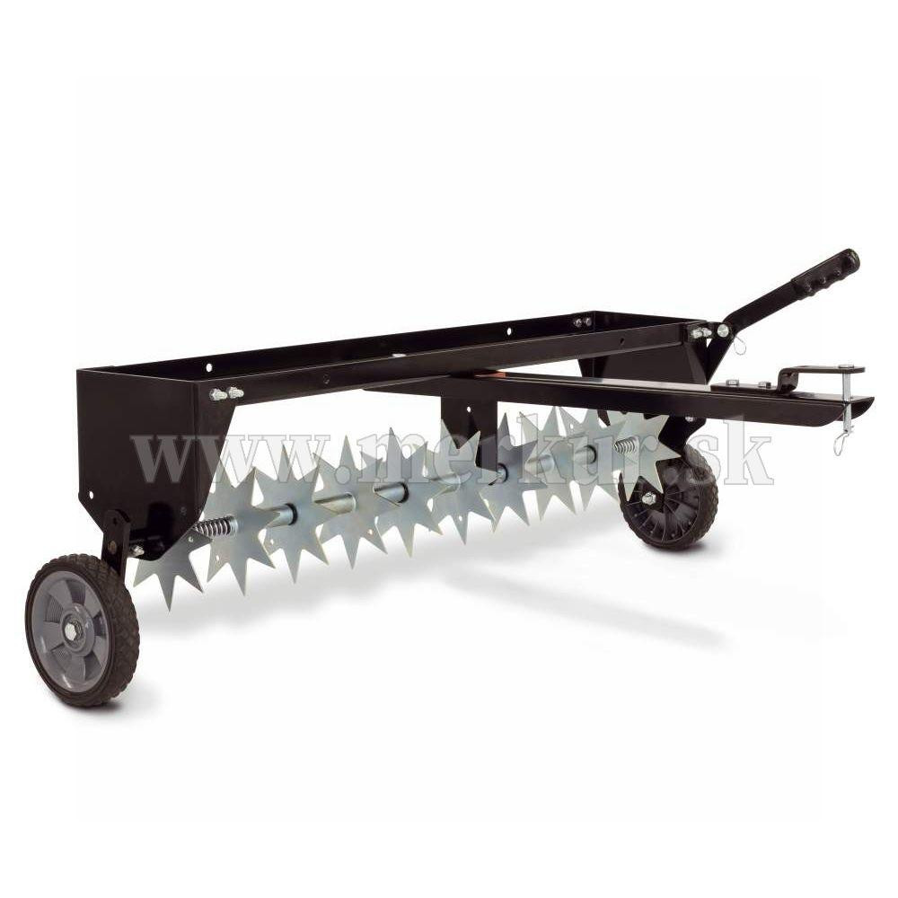 Závesný prevzdušňovač trávnika, prac. šírka 102 cm, priemer hviezdic cca. 23 cm, 10 hviezdic, hĺbka prevzdušnenia do 6 cm, s transport. kolieskami.