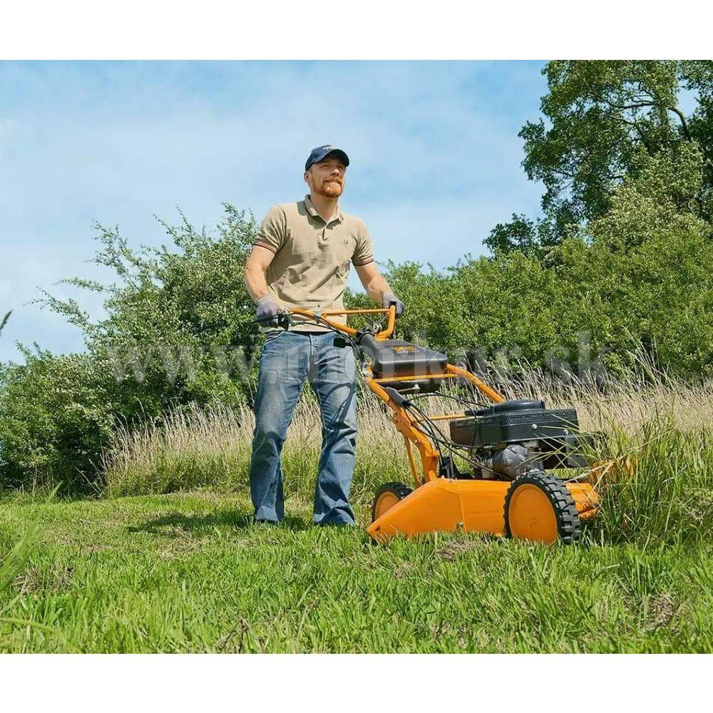 Výšky kosenia je možné nastaviť od 30 do 100 mm prostredníctvom šiestich úrovní na každej náprave. Pracovný výkon dosahujúci 2 500 m² za hodinu je možný vďaka výkonnému dvojtaktnému motoru s výkonom až 6,0 k a šírke záberu 53 cm. AS 53 2T ES 4WD ľahko kosí trávu až do výšky 40 cm.