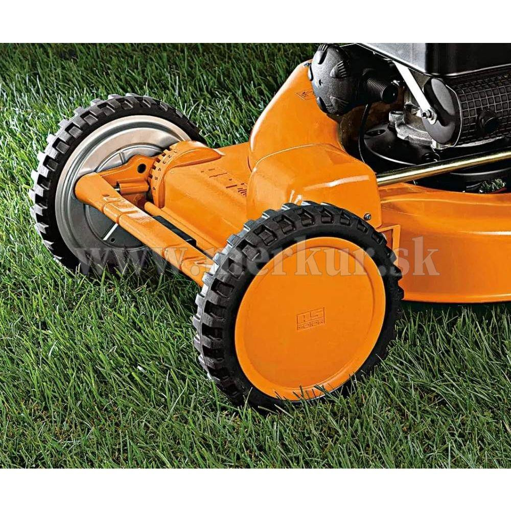 Rýchlosť jazdy je možné pomocou variátora pohodlne nastaviť tak, aby vyhovovala daným podmienkam. Mechanický pohon všetkých kolies spomalí sekačku autonómne pri pohybe z kopca.