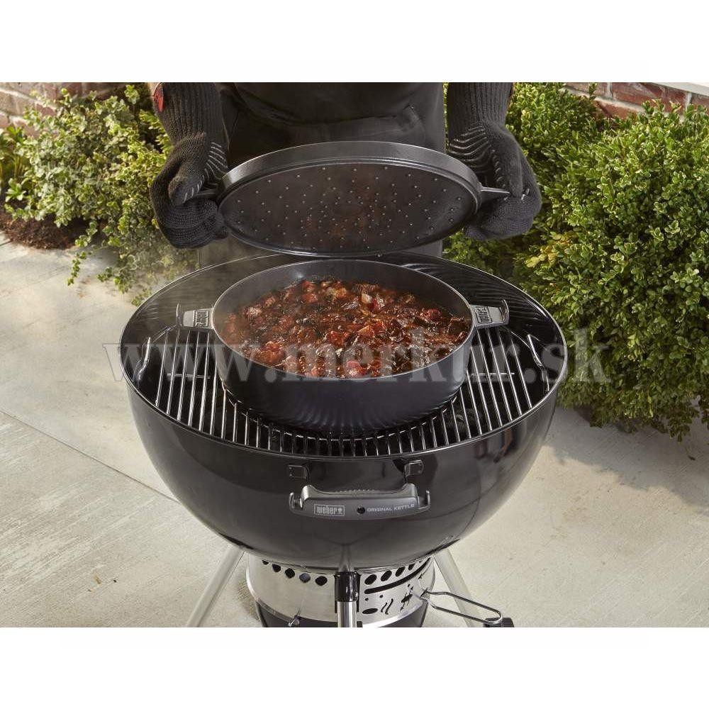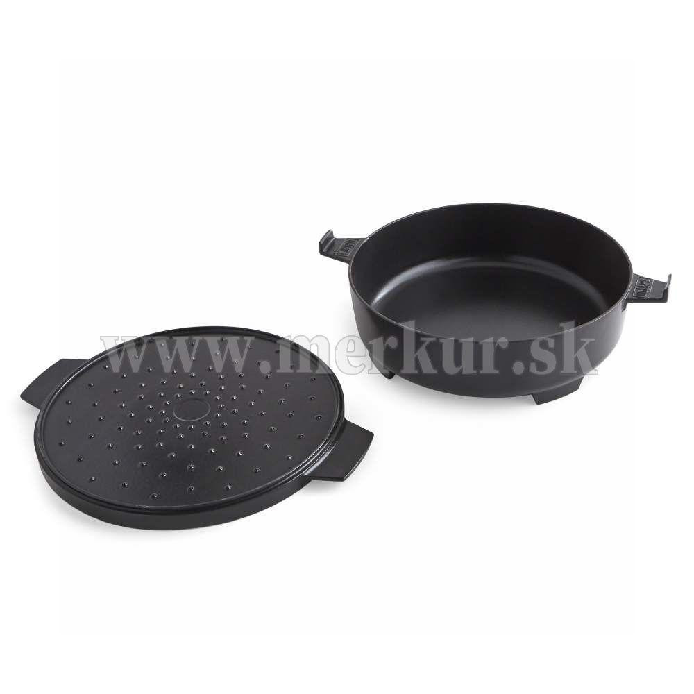 Pokrievka s priemerom 33cm môže zároveň slúžiť ako panvica na opekanie zeleniny, mäsa či pečiva.