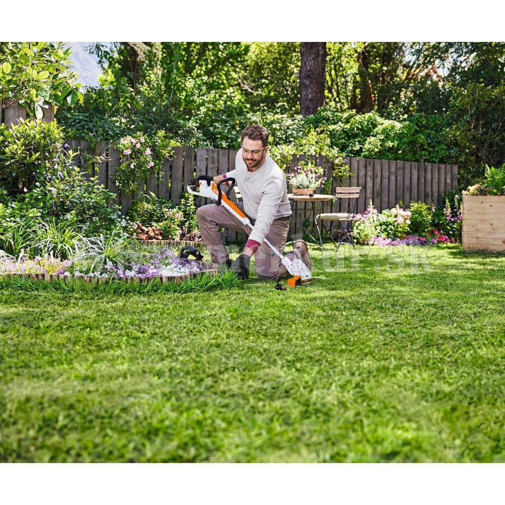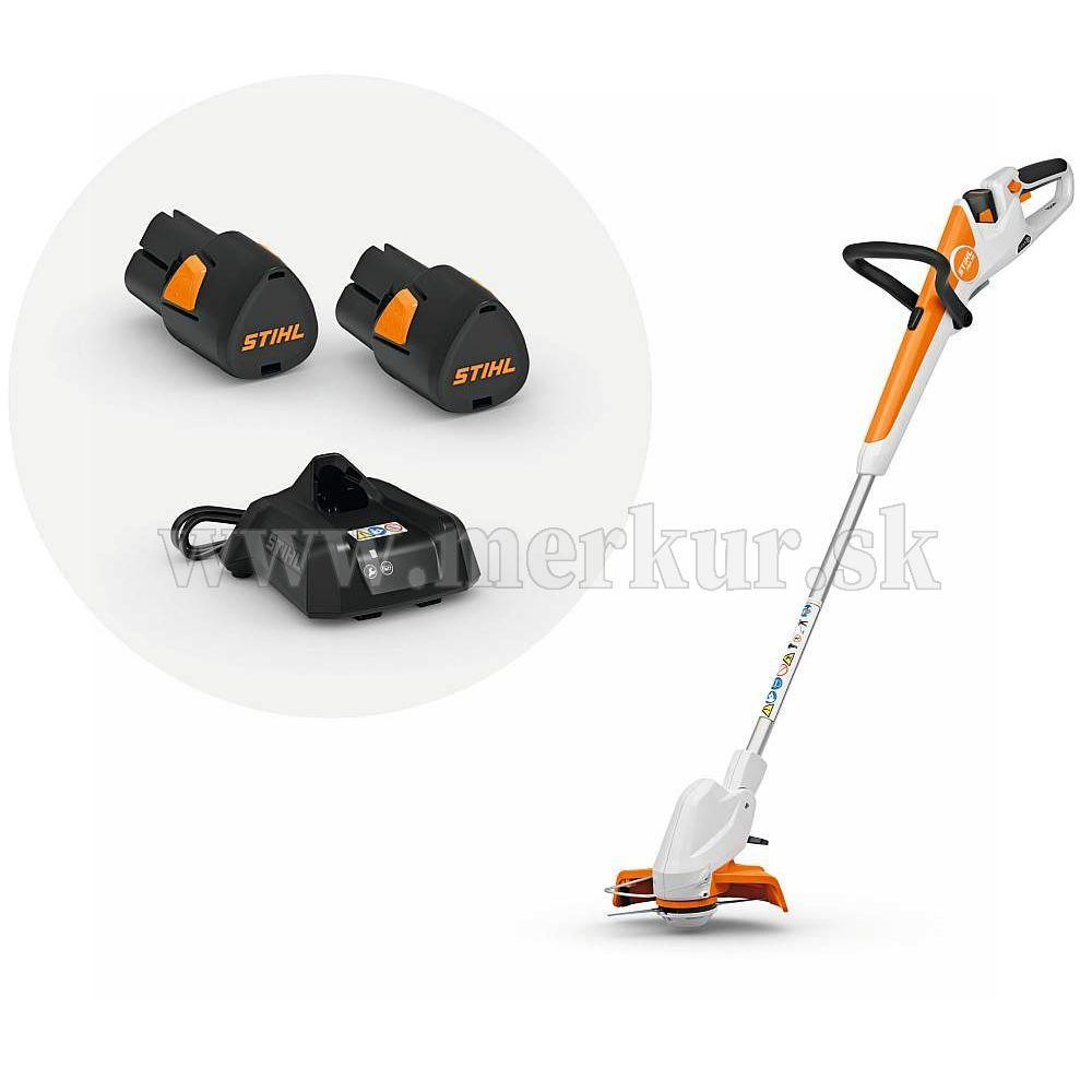 Kompaktný a tichý akumulátorový vyžínač FSA 30 dostanete spolu s 2 batériami STIHL AS 2 a štandardnou nabíjačkou STIHL AL 1. To znamená, že môžete začať s kosením stredne vysokej trávy, ošetrovaním okrajov trávnika alebo upratovacími prácami.Dvojnásobná výdrž batérie je k dispozícii bez dlhého prerušenia.