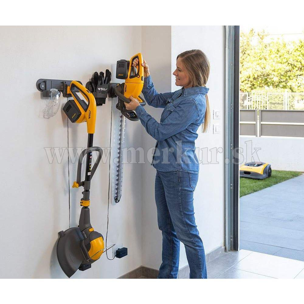 Vďaka priloženému úložnému systému naviac môžete náradie zavesiť na stenu pre uskladnenie a dobíjanie. Súčasťou balenia sú 2x batéria a nabíjačka.